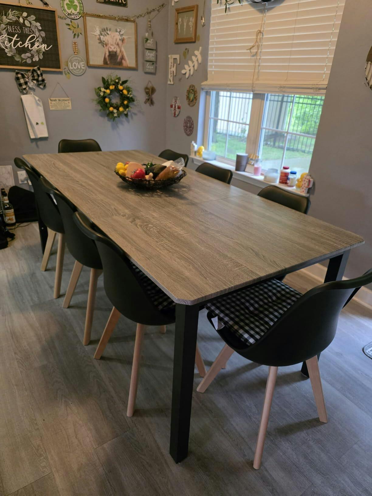 Transform your dining space with our sophisticated 78.7" dining table, perfect for hosting 6-8 people. Combining industrial charm with modern design elements for an unforgettable dining experience.