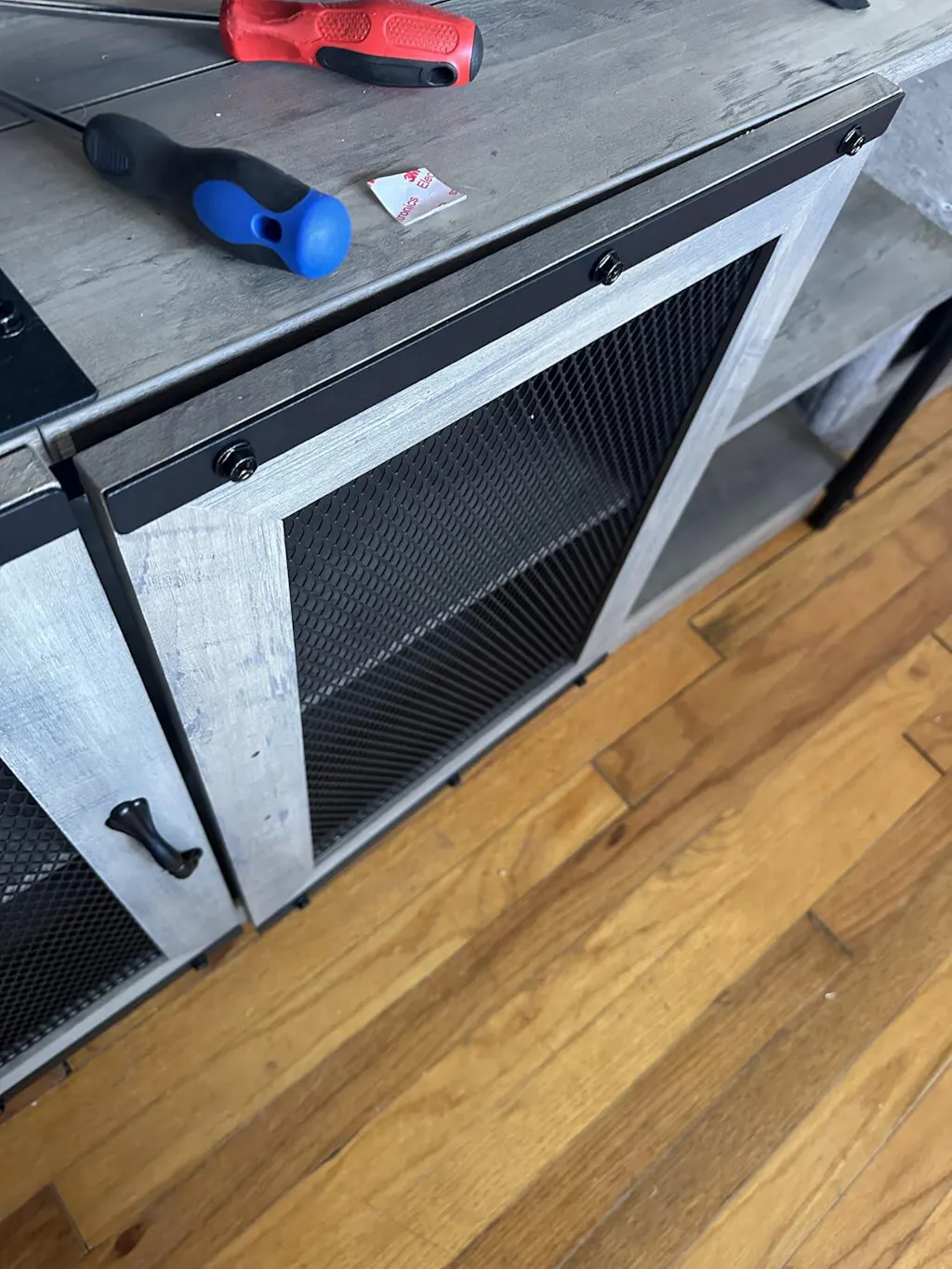 - Visual mesh door with convenient cable holes