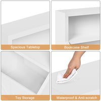 This 2-tier kids bookshelf and toy storage features 2 large open storage cubbies and a spacious tabletop. Kids' accessible size makes it easy for small children and toddlers to interact, ideal storage organizer to help your kids develop good habits to organize toys and books without help.
