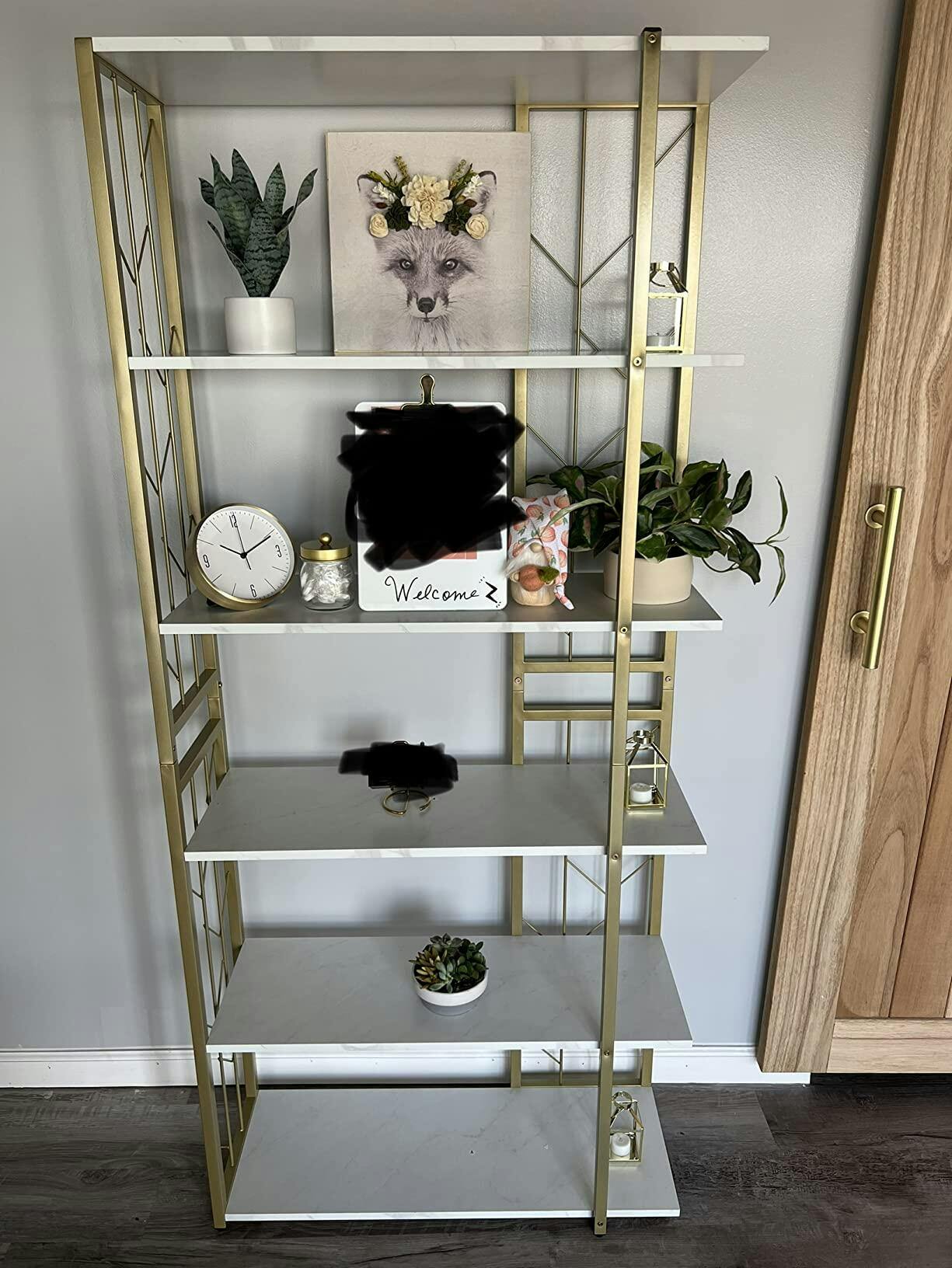 Garvee Modern Bookcase Tall Standing Bookshelf 70.8 inch Storage Rack Shelf with Metal Frame Large Unique Display Racks Elegant Bookshelf for Bedroom, Living Room, Home Office, White/Gold