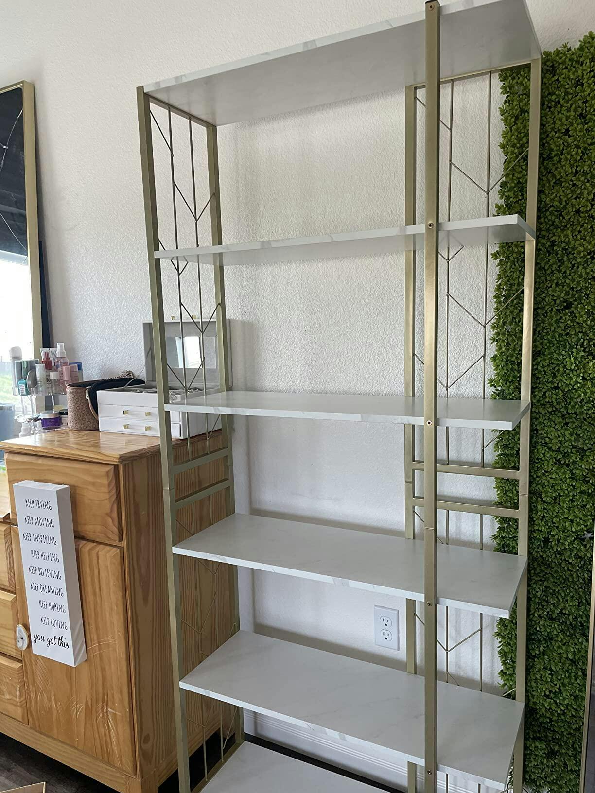 With its modern white and gold finish, this bookcase combines aesthetics with functionality. The sturdy construction ensures stability, while the spacious shelves provide ample room for all your storage needs.