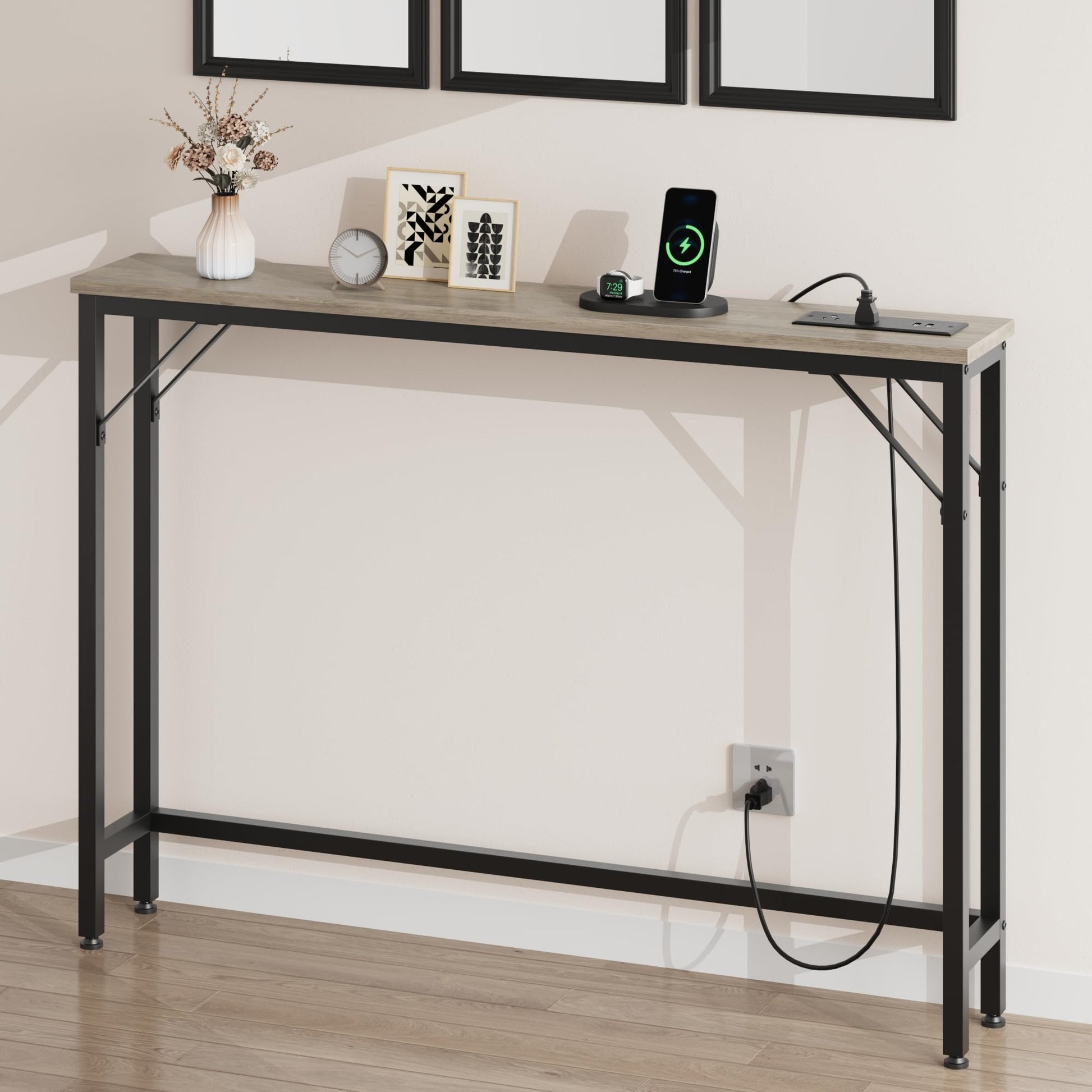 Elevate your entryway or living room with the GARVEE Console Table featuring a built-in charging station
