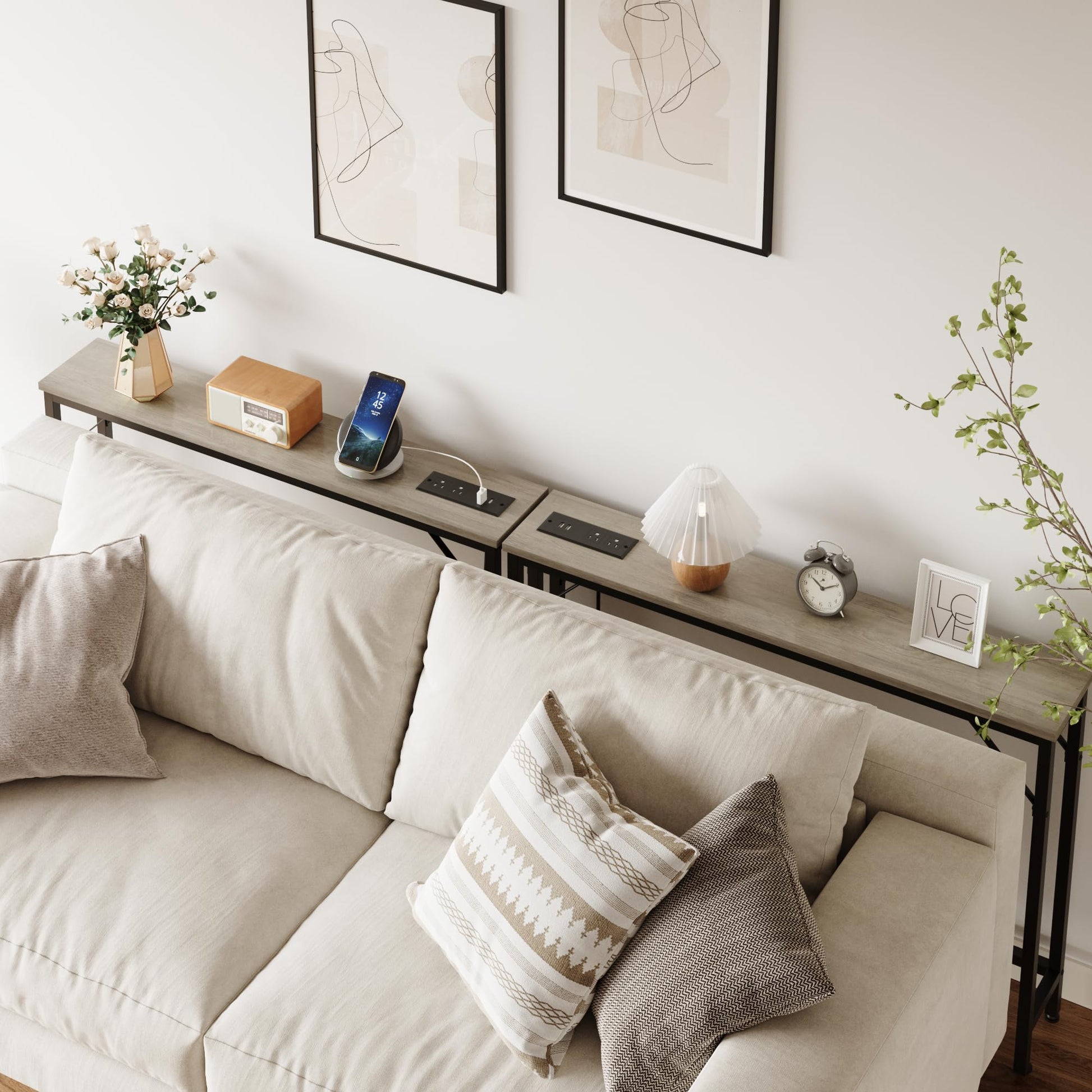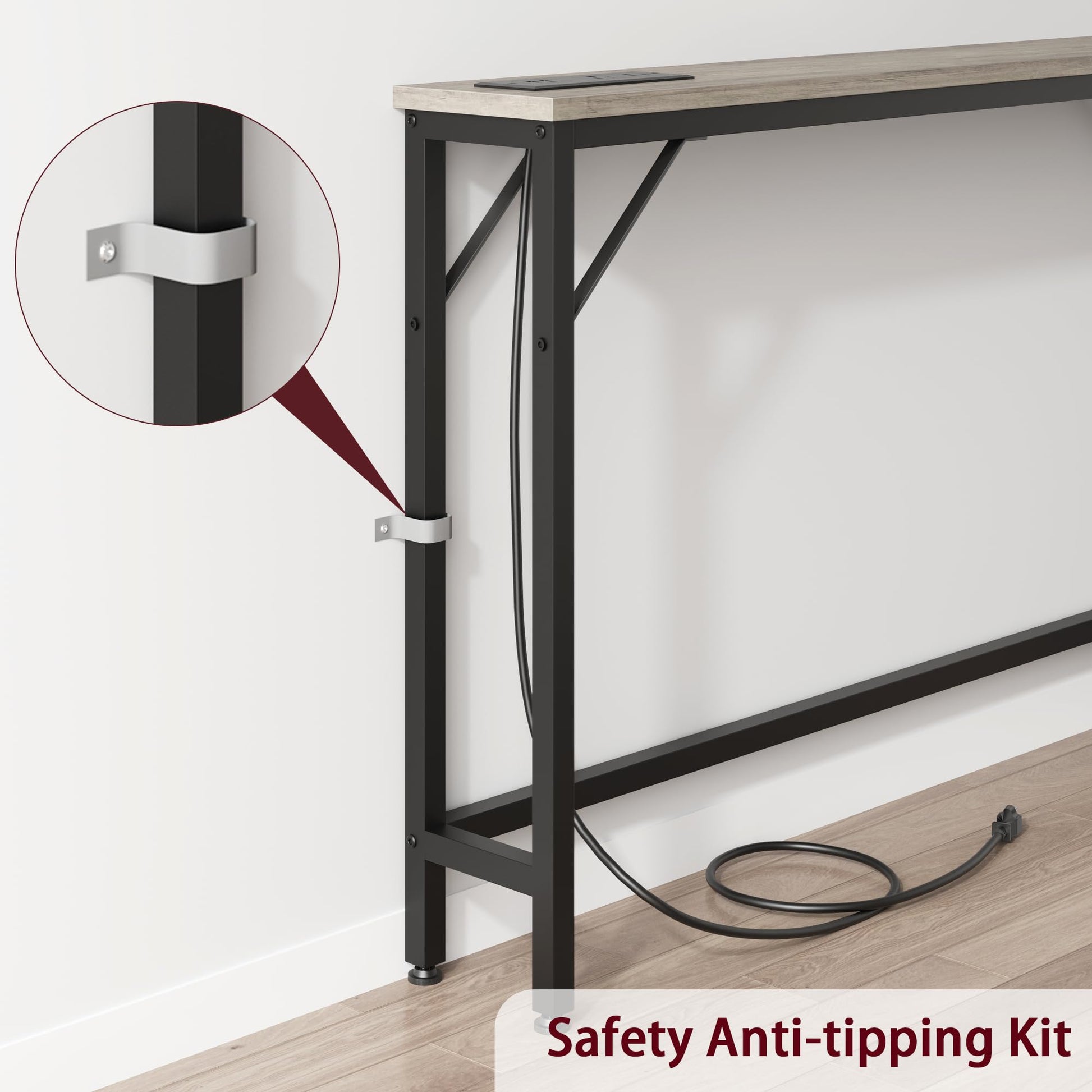 Garvee 5.9" Narrow Sofa Table with Charging Station, Slim Console Table with Storage, MDF & Metal, Modern for Living Room