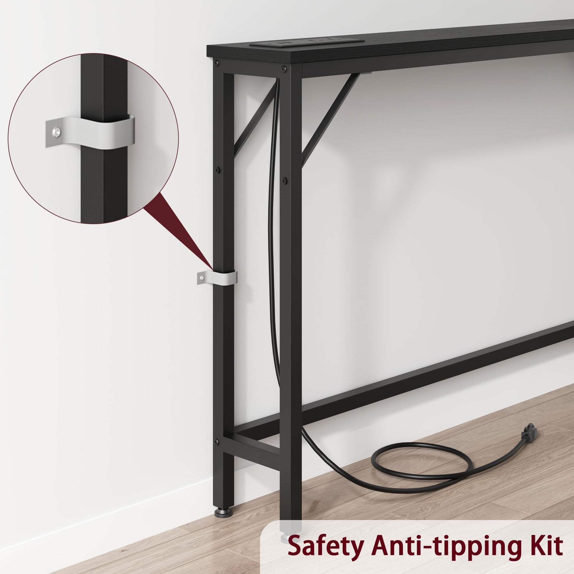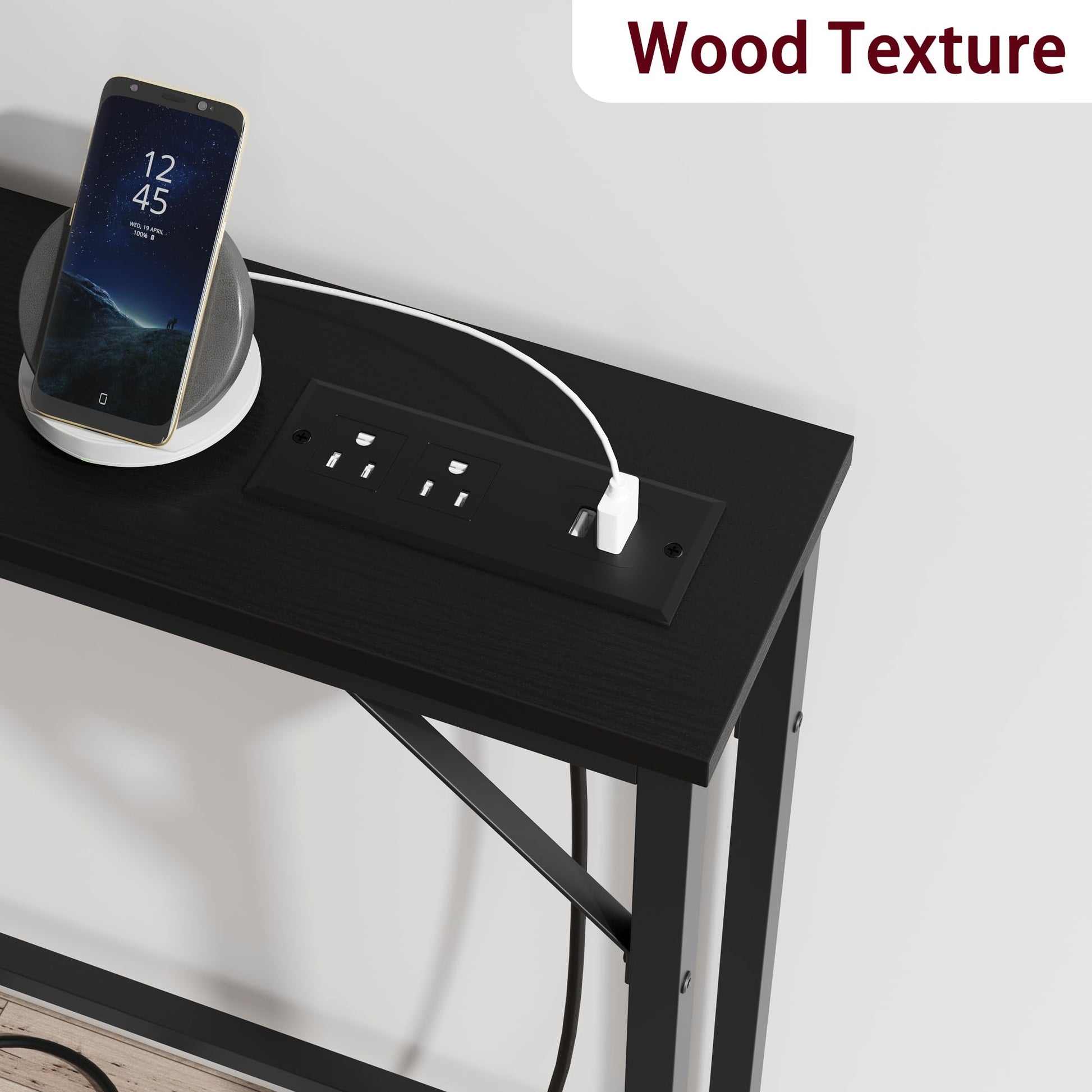 Garvee 5.9" Narrow Sofa Table with Outlets, Slim Console Table with Storage, MDF Board & Metal, Easy Assembly, for Living Room, Entryway, Hallway - Black