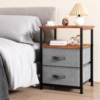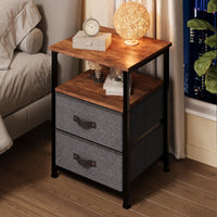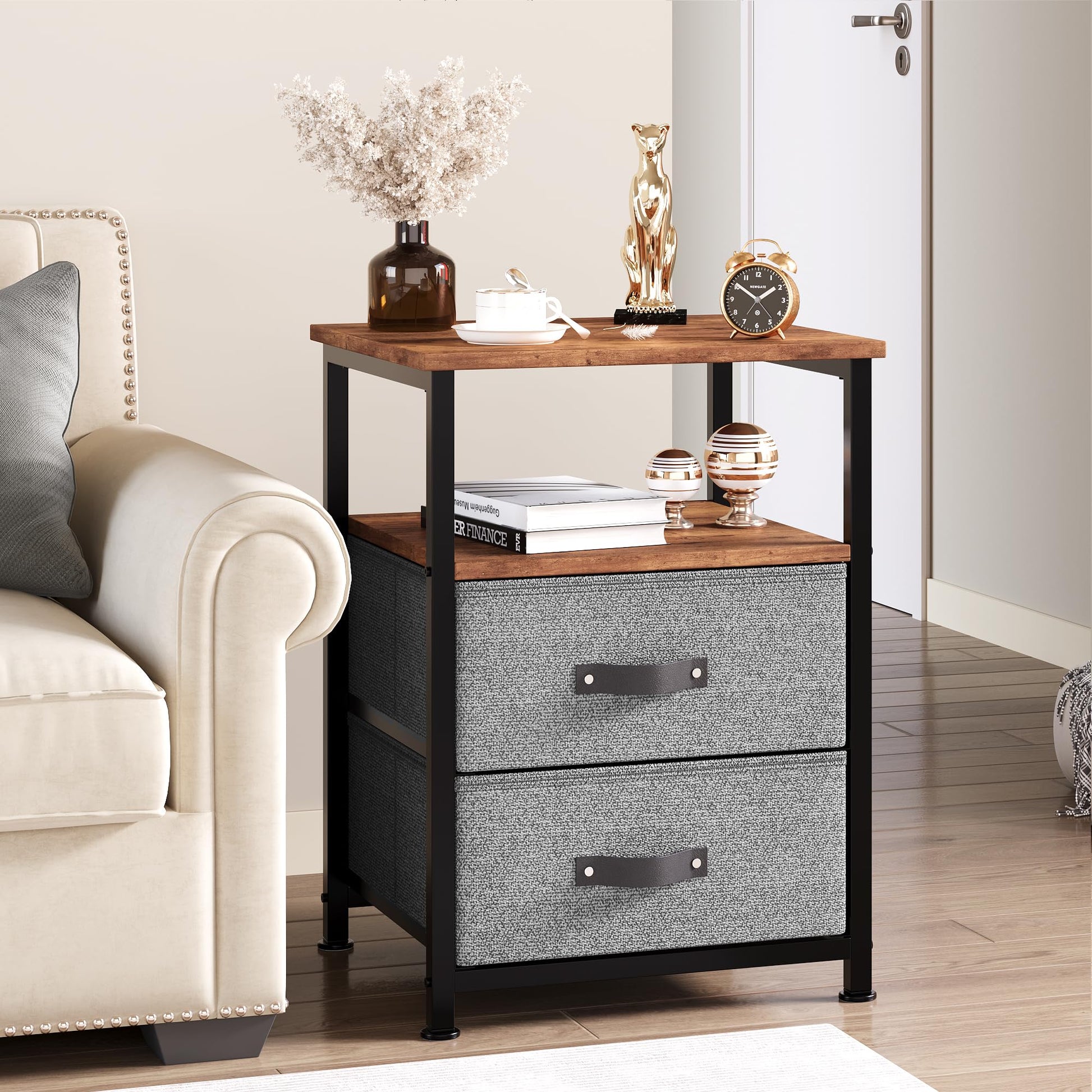 Garvee Nightstand with Drawers + Storage End Table + Rustic & Industrial + MDF Wood & Metal + 2 Drawers + Bedroom & Living Room