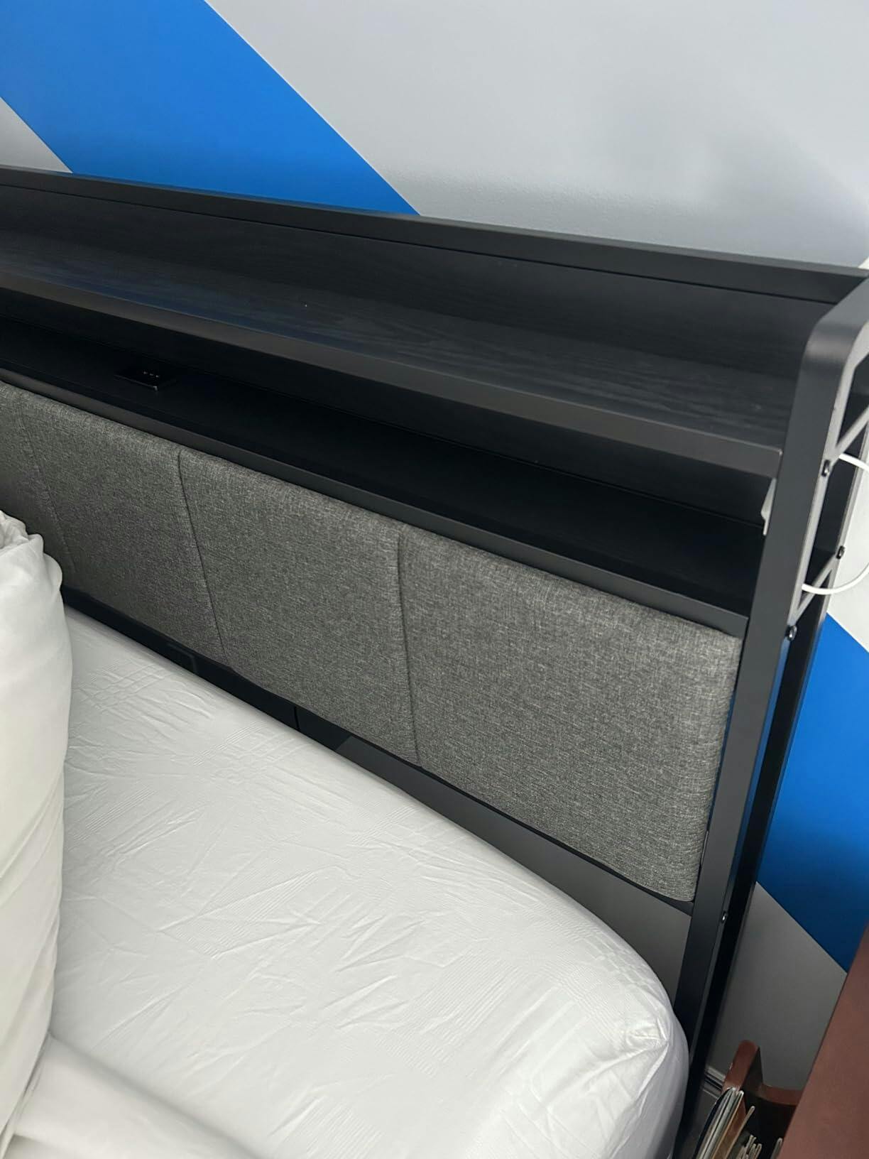 - 【Upholstered Headboard with Charging Station】The headboard features 2 shelves for easy storage of small items such as phones, glasses, and books. It also comes with 4 USB ports (including 1 type C USB port) providing a maximum of 5v/3a for faster charging, allowing you to conveniently charge your phone and tablet while lying down. The linen fabric headboard also allows you to comfortably lean back and read or use your phone.