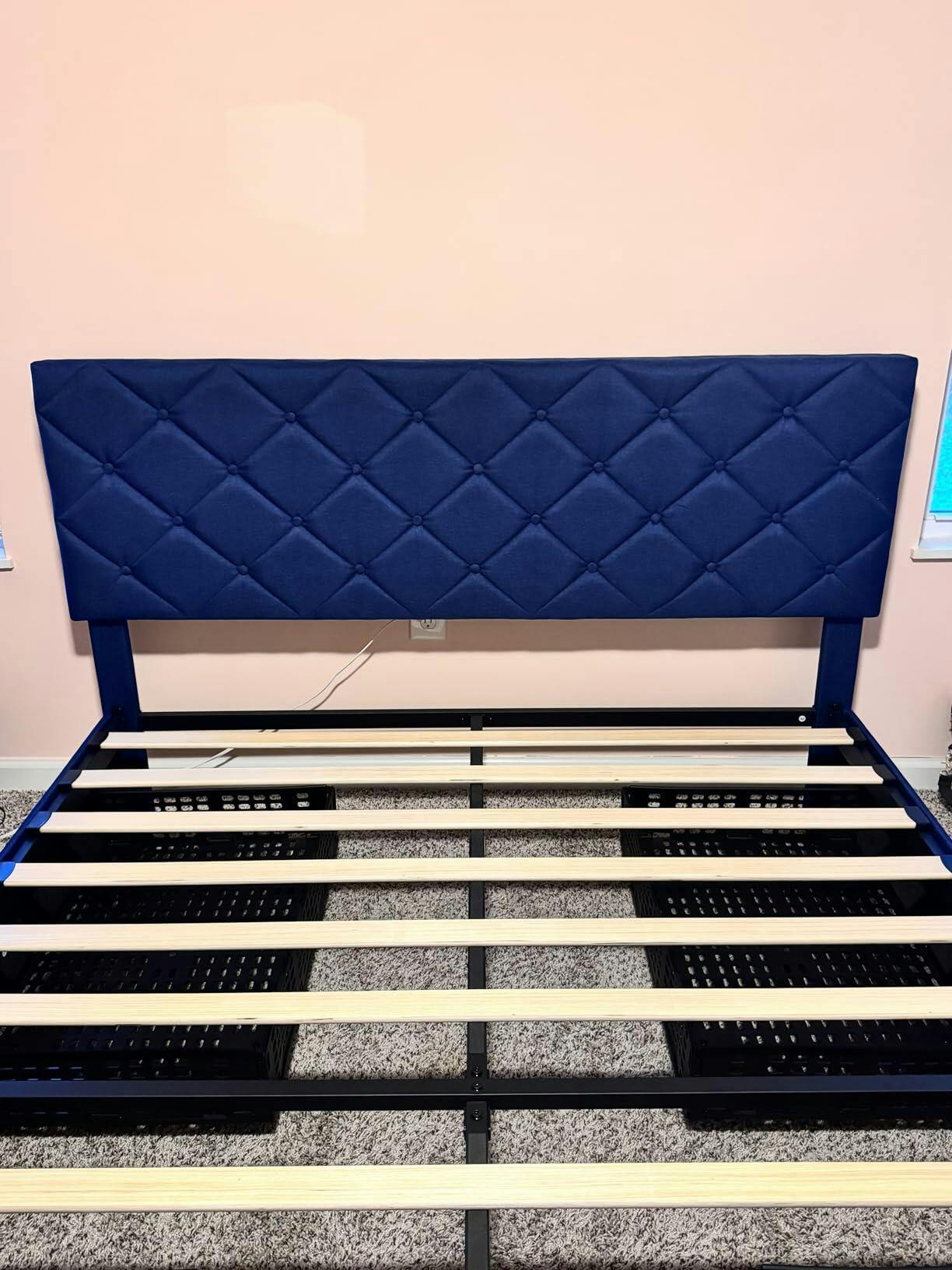 - Soft, upholstered headboard for comfortable back support