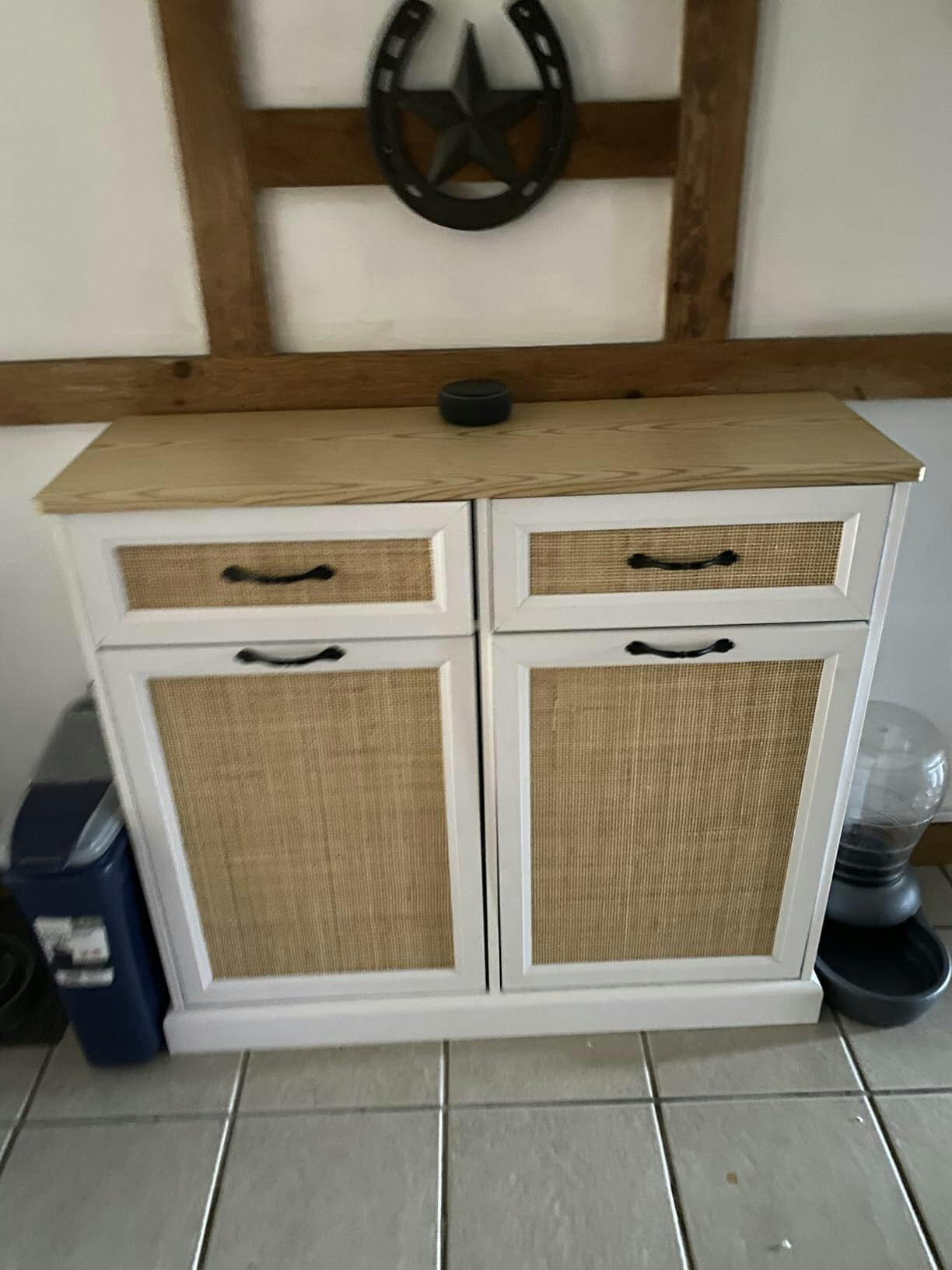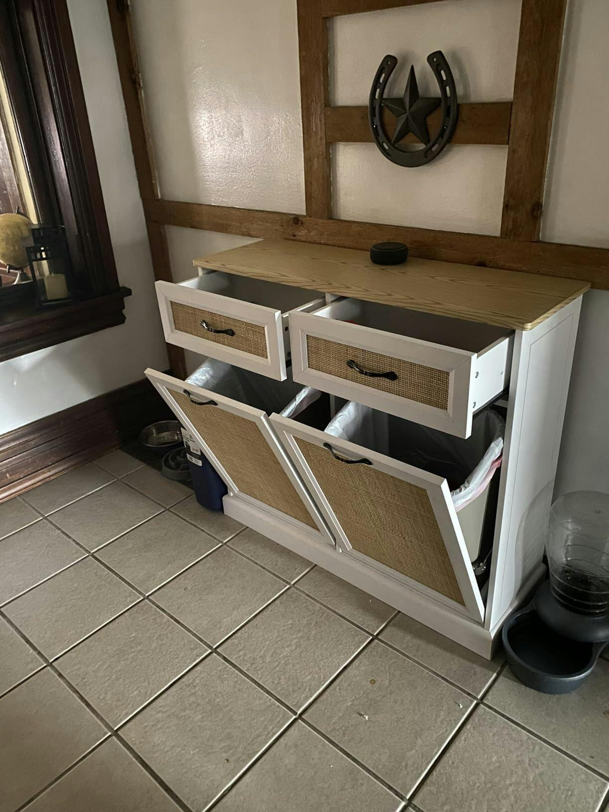 Transform your kitchen, dining, or living room with our versatile and elegant hidden trash can cabinet. Designed for convenience, aesthetics, and practicality, it's the perfect solution for discreet waste management in any home.
