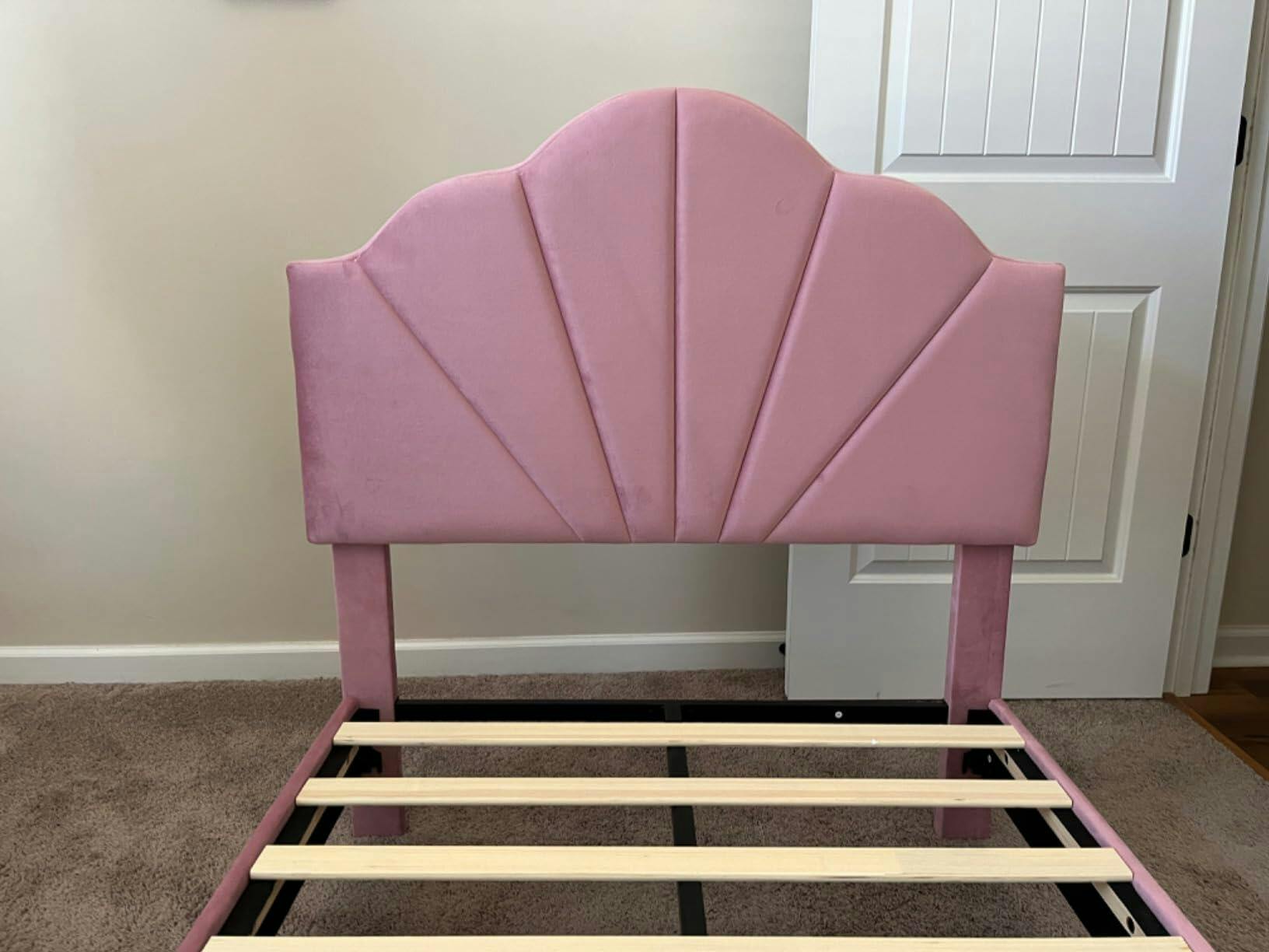 - Elegant velvet upholstered headboard for a luxurious look