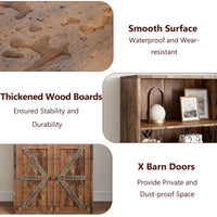 Showcases a charming farmhouse style with X-pattern barn doors, adding rustic elegance to any room.