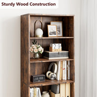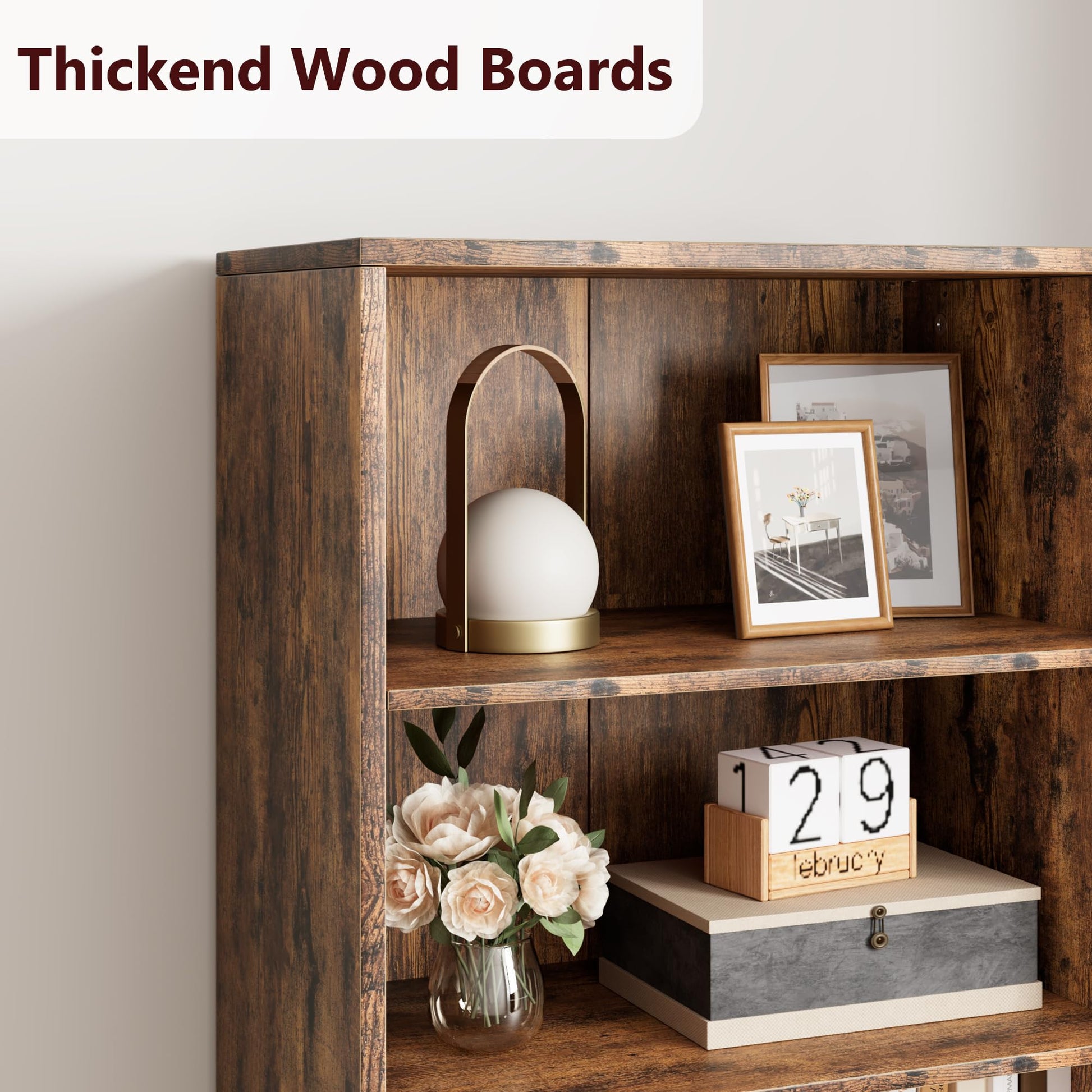 Garvee Industrial Bookshelf with Doors, 11.8in Depth, 71.4in Tall, Wooden 6 Shelf, Farmhouse Style, for Bedroom, Living Room, Home Office