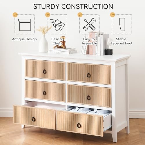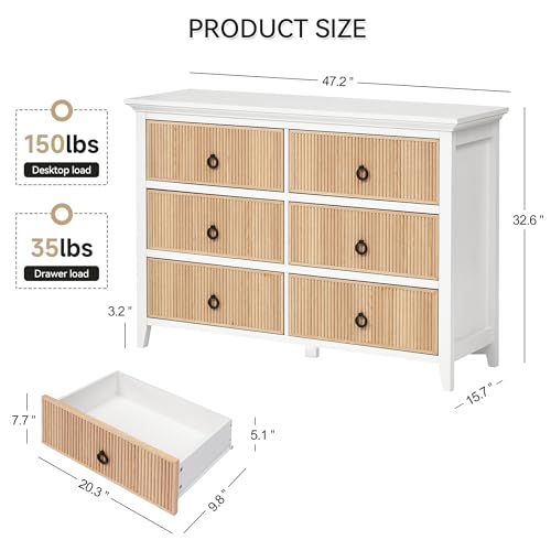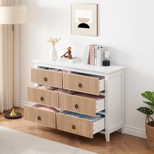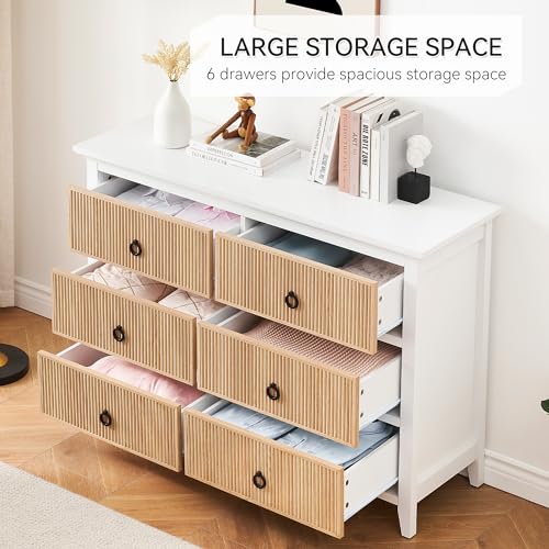 Garvee Wood Dresser for Bedroom - 6 Drawers, Modern Chest, High-Quality Wood, Versatile Design, Ample Storage, Easy to Install