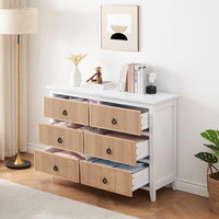 The GARVEE Wood Dresser isn't just furniture - it's a storage powerhouse. With six large drawers, it provides ample space for clothes, linens, and accessories, helping you maintain an organized and clutter-free environment.