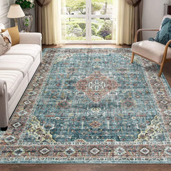 Garvee Area Rug Living Room Rugs 8x10 Rug Oriental Vintage Floor Cover Soft Non Slip Bedroom Rug Traditional Distressed Carpet Mat Foldable Thin Accent Rug Boho Rug for Dining Room, Green