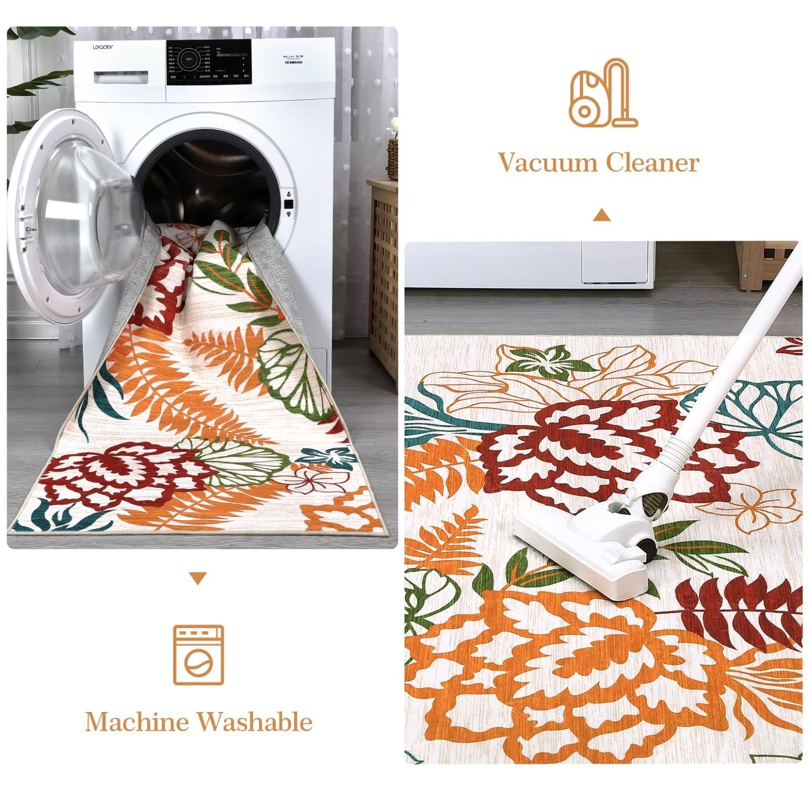 - 【Machine Washable】The modern floral pattern carpet is conveniently machine washable, making it easy to maintain and clean. This feature allows you to quickly and effortlessly freshen up the carpet whenever necessary, eliminating the need for costly professional cleaning services.