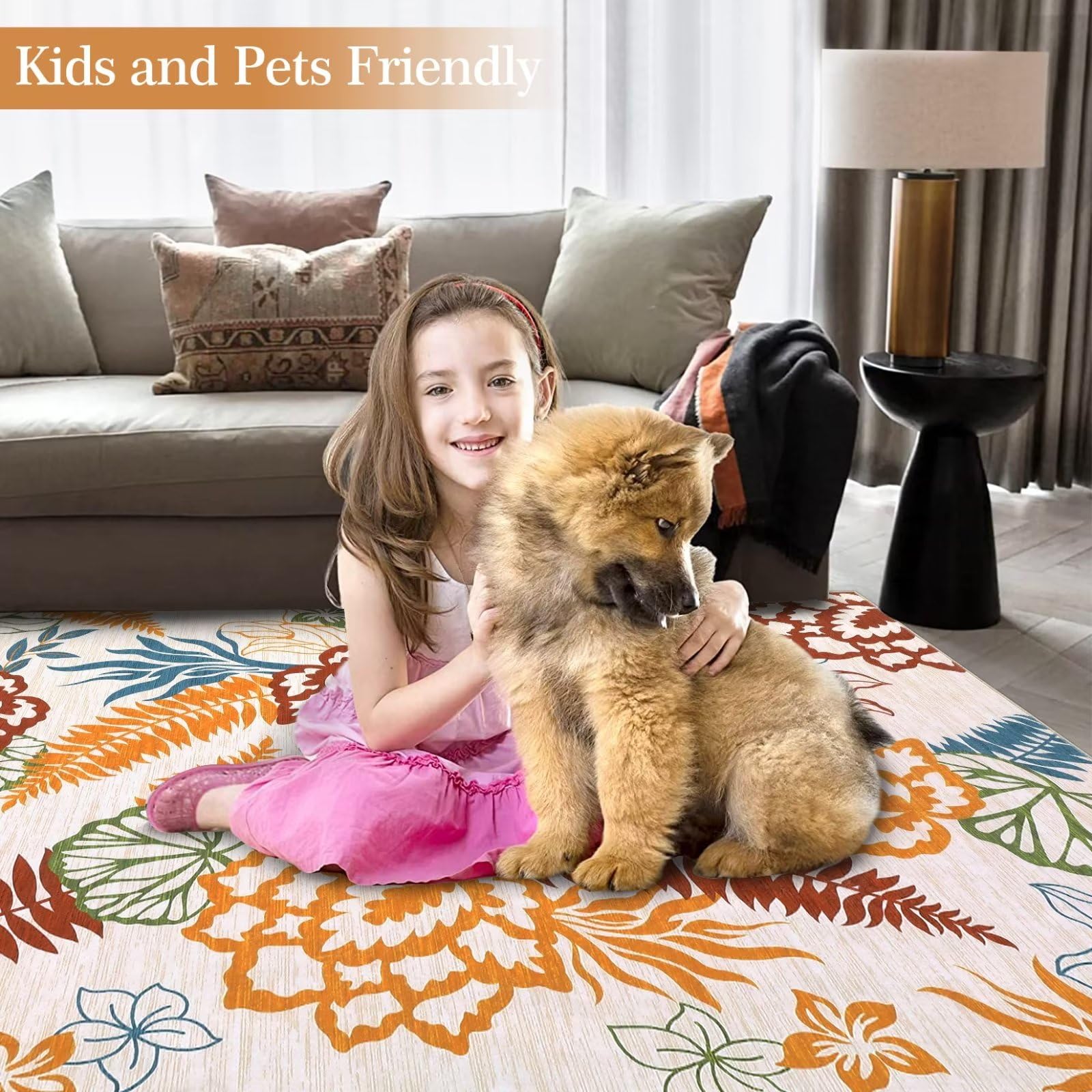 - 【Non-Slip】The floral rug carpet features a non-slip backing, ensuring that it stays securely in place even in high traffic areas. This provides added safety and prevents any accidental slips or trips.