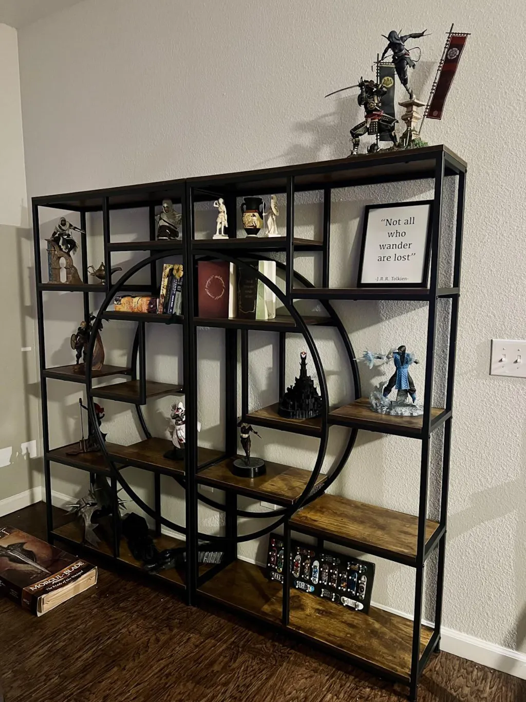With its retro brown finish and metal frame, this bookshelf combines industrial chic with practical design. The 9-tier structure provides ample space for books, decor, and plants, making it a versatile addition to any room.