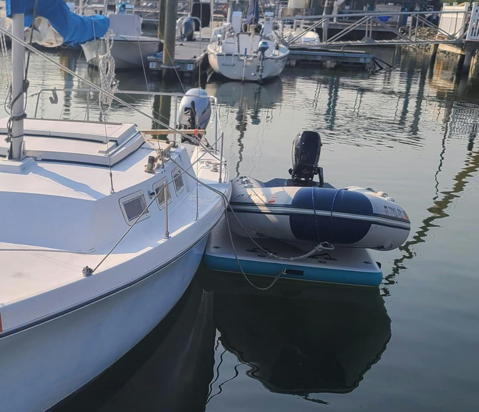 - ✅ Lightning-Fast 15-Minute Setup – Our Floating Dock included high-flow hand pump inflates/deflates the dock with minimal effort. When deflated, it folds down to a compact 24"x18" size – small enough to fit in car trunks, boat cabins, or RVs for effortless transport and storage.