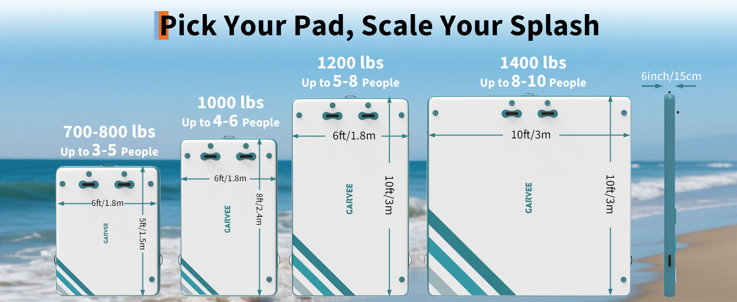 - ✅ 4 Perfect Sizes for Every Need – Choose from our range: 5ft×6ft (holds 2-3 people/455lbs), 8ft×6ft (4-6 people/675lbs), 10ft×6ft (5-8 people/925lbs), or the massive 10ft×10ft (8-10 people/1200lbs). Whether you're relaxing solo or hosting a group adventure, we've got you covered.