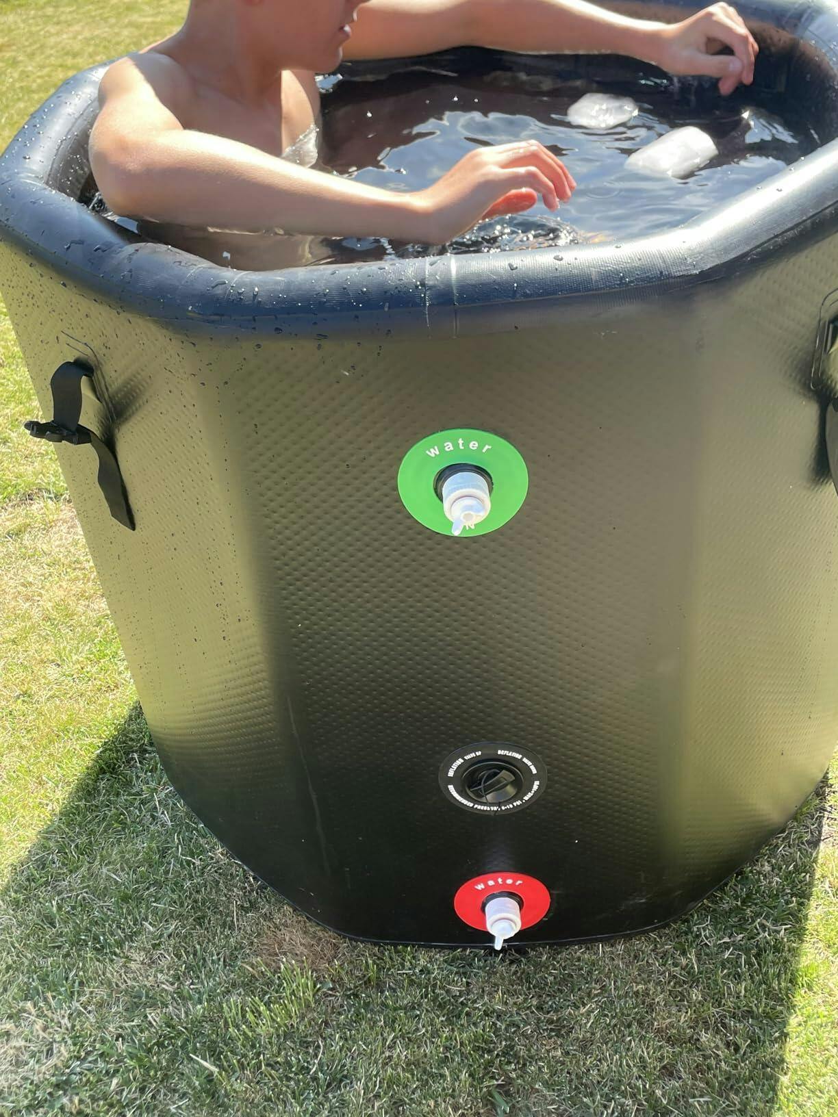I did something I normally would not do and purchased this Ice Bath Tub without any reviews and I am glad I did. I was recently introduced to cold plunging and purchased a starter kit and chiller. The ice bath the kit came with was 29" x 29". I barely fit as a 5'11" male at 240 lbs. I did a ton of research on the ice baths and was settled on the inflatable versions to put in my garage. During my research I kept coming back to this one. So I took a chance and ordered it. It arrived several days early. It was easy to inflate and it was much bigger than I hoped. The inflatable walls insulate much better. The chiller works less and keeps a cooler temperature. The 1/2 inch chiller connections were solid with no leaks. The inflatable lid makes a big difference as well. It is very sturdy. At my weight, I'm pretty sure I could sit on it without issues. The only downside I could see with it is the air pump. It comes with an air pressure gauge, but it did not work. So I had to estimate the recommended 8 to 10 psi. It is tall. I used a small step stool to get into the ice bath. And I fit pretty comfortably once inside, nevermind the water temp. All said and done, I am very happy with this purchase. Attached is a size comparison from a 29.5 inch ice bath to the GARVEE 36 inch ice bath.