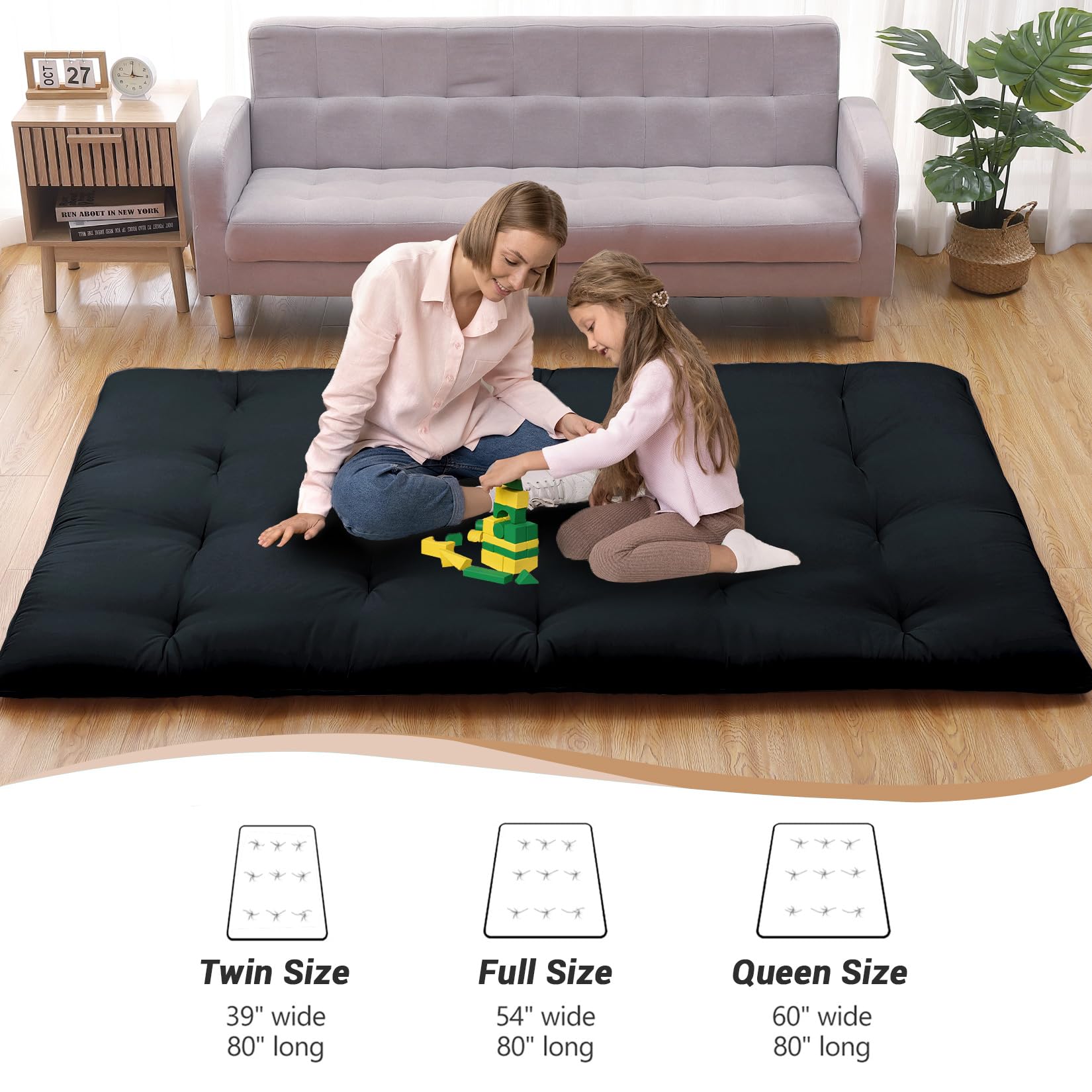Garvee Japanese Floor Mattress, Futon Mattress Full Size 54"x 80", Roll Up Mattress for Floor Tatami Mat, Sleeping Mat Camping Mattress Pad for Dormitory Guest Room, Black