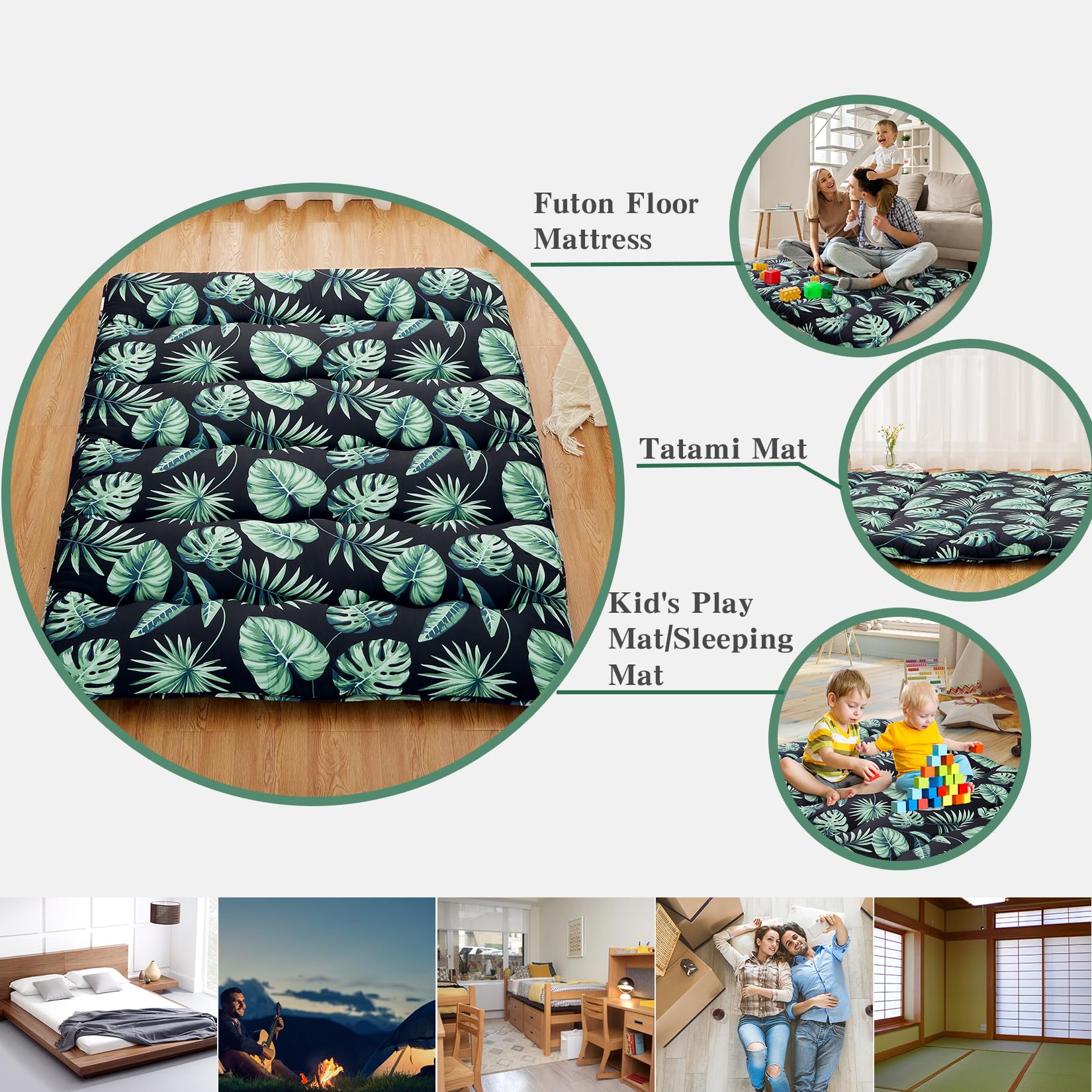 Garvee Japanese Futon Mattress, Full Size Futon Floor Mattress Japanese Style Floral Pattern Mattress for Floor, Tatami Mat, Sleeping Mattress Pad for Camping Travel, Flowers