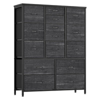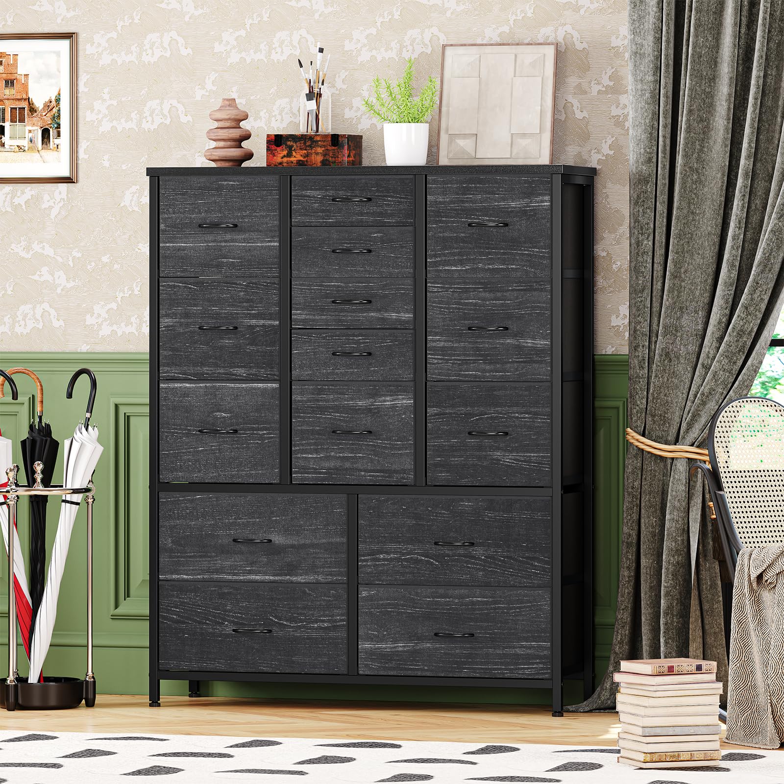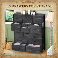 Garvee 15 Drawer Dresser for Bedroom - Tall & Versatile Storage Organizer with Fabric, Metal Frame, Wood Top - Side Pockets, Hooks, Easy Assembly - Charcoal Black