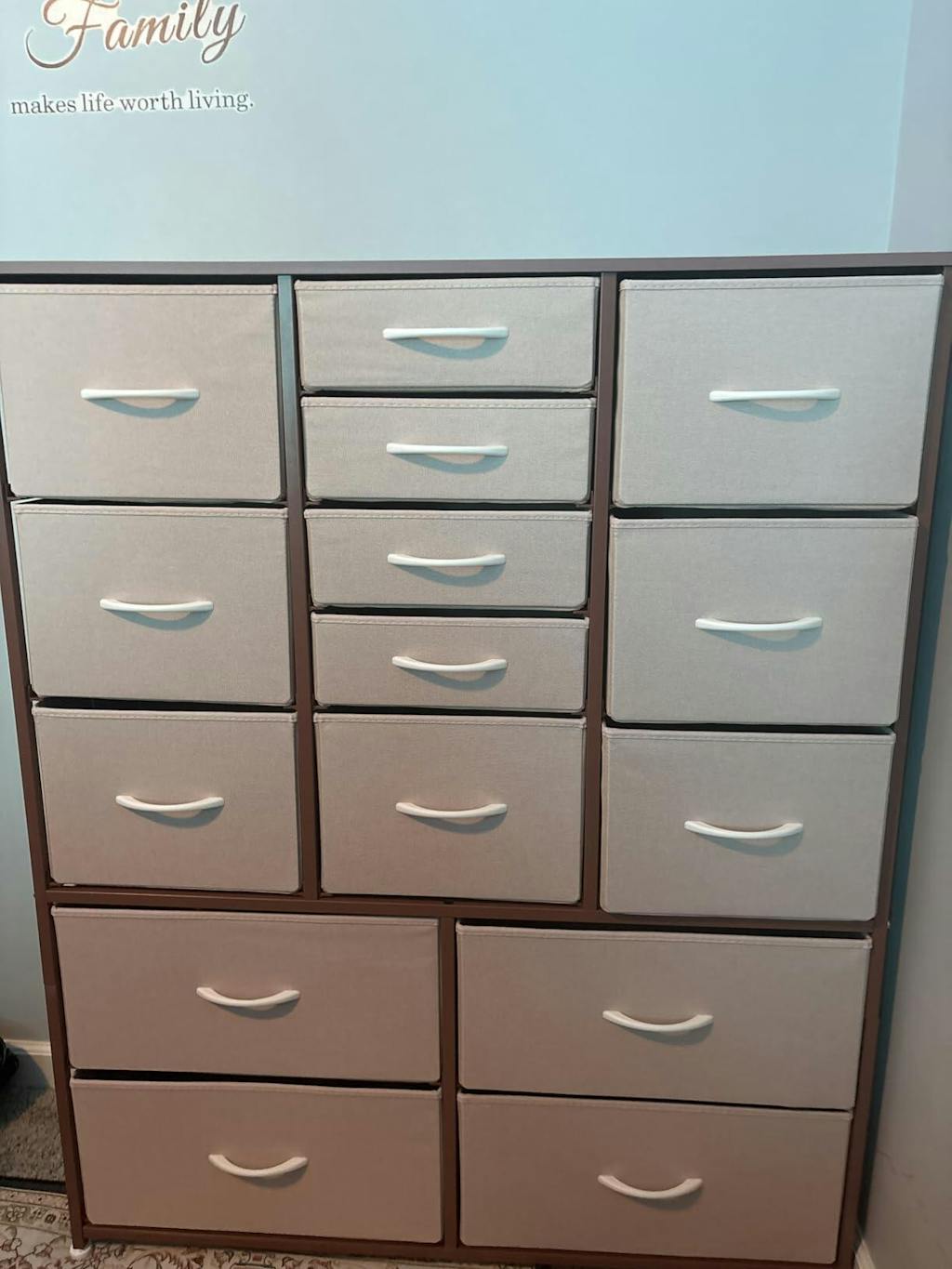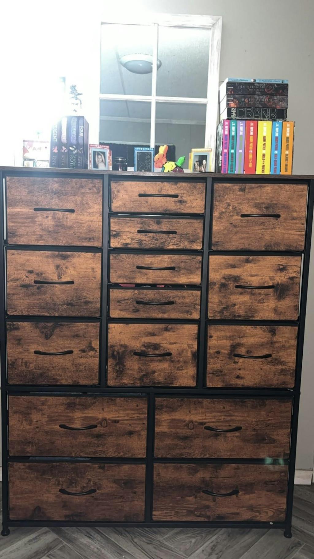 Great dresser! It’s exactly as they described. It can fit in a narrow, tall spot so nicely! Very happy with the purchase! It stores a lot of stuff!