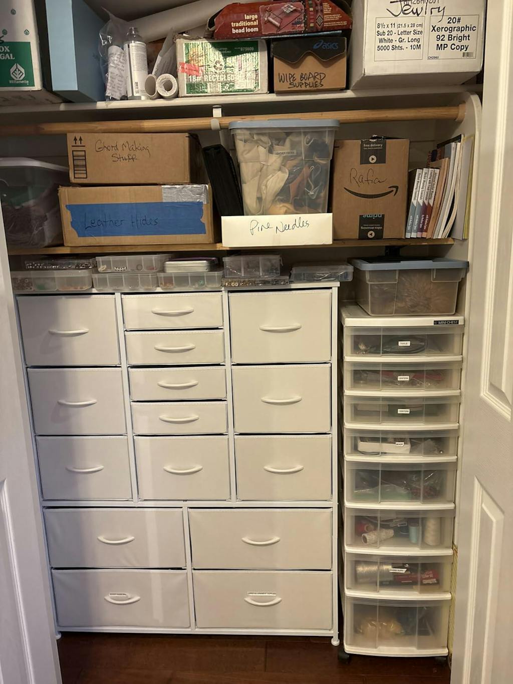 I put this together with ease. It is perfect for my craft closet. The metal frame makes it very sturdy. It was lightweight and easy to move by myself, too. I am a 5’3” female lightweight. lol being able to do the whole assembly and moving by myself was really nice. The fabric drawers are lightweight but hold a lot and are sturdy. I really like this piece of furniture.