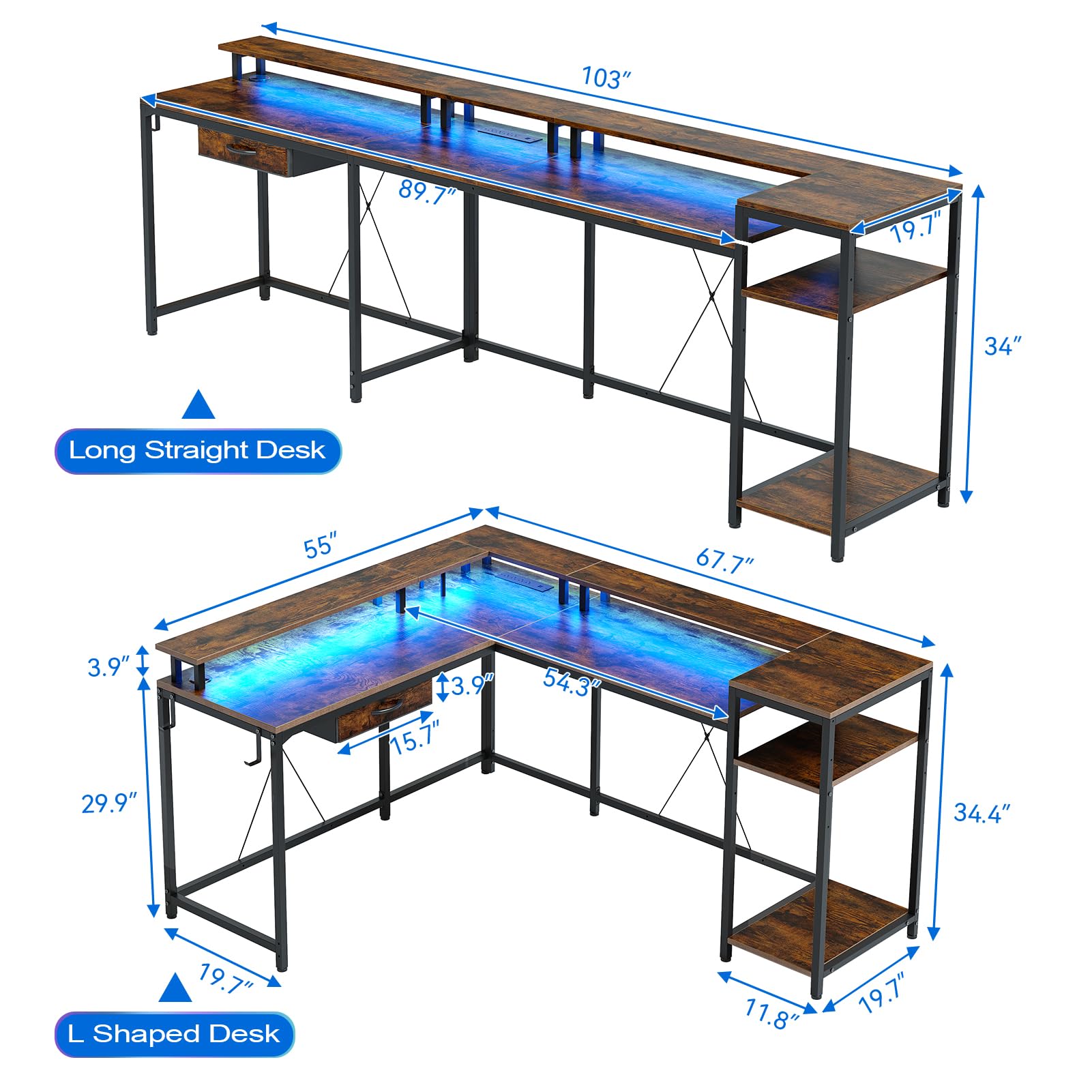 Elevate your gaming and work experience with our multi-functional L-shaped desk. Designed for both comfort and style, it's the perfect centerpiece for any home office or gaming setup.