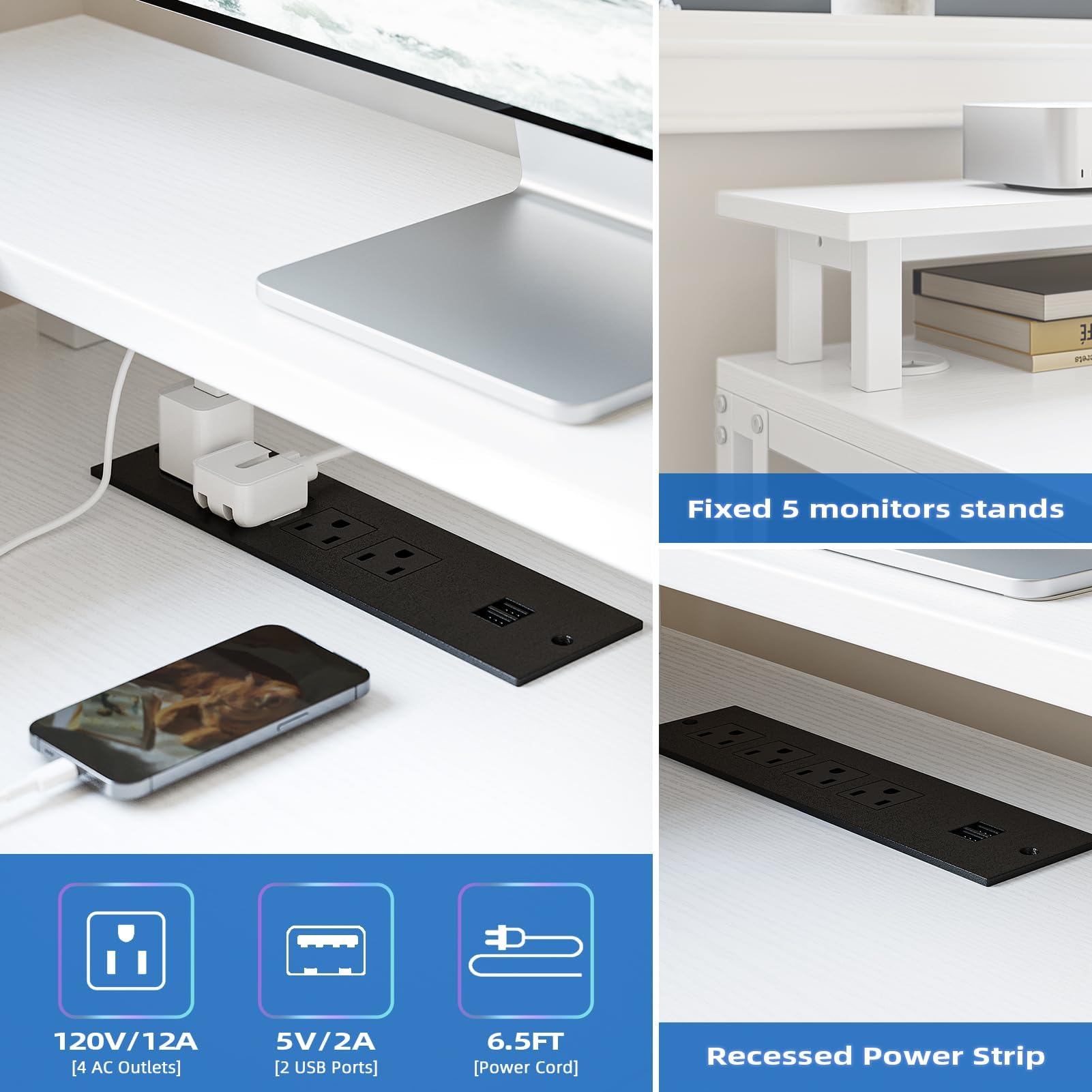 Stay connected with 4 AC outlets and 2 USB charging ports built right into the desk.