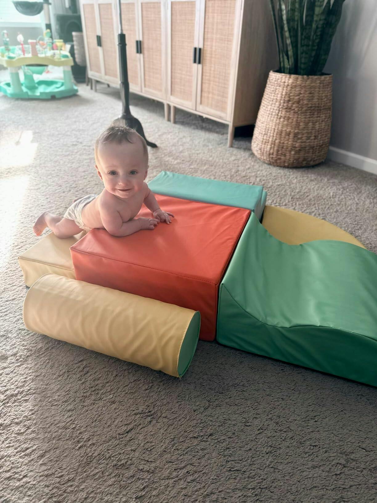 - 6-Piece Versatile Set: Includes a staircase, a square mat, a rectangular mat, a fan-shaped mat, a wavy climbing mat, and a cylinder. Combine these pieces in various ways to enhance your child's climbing experience.