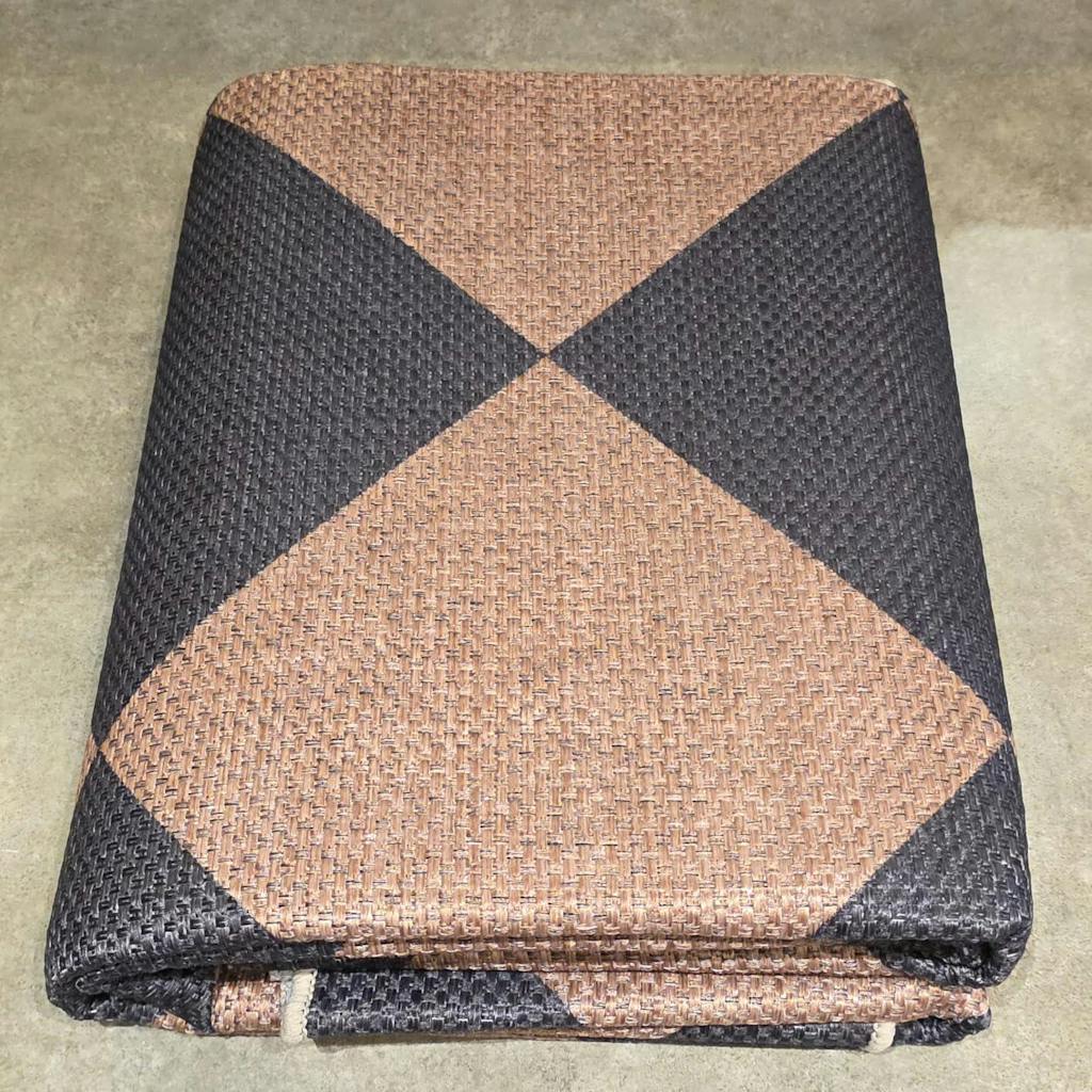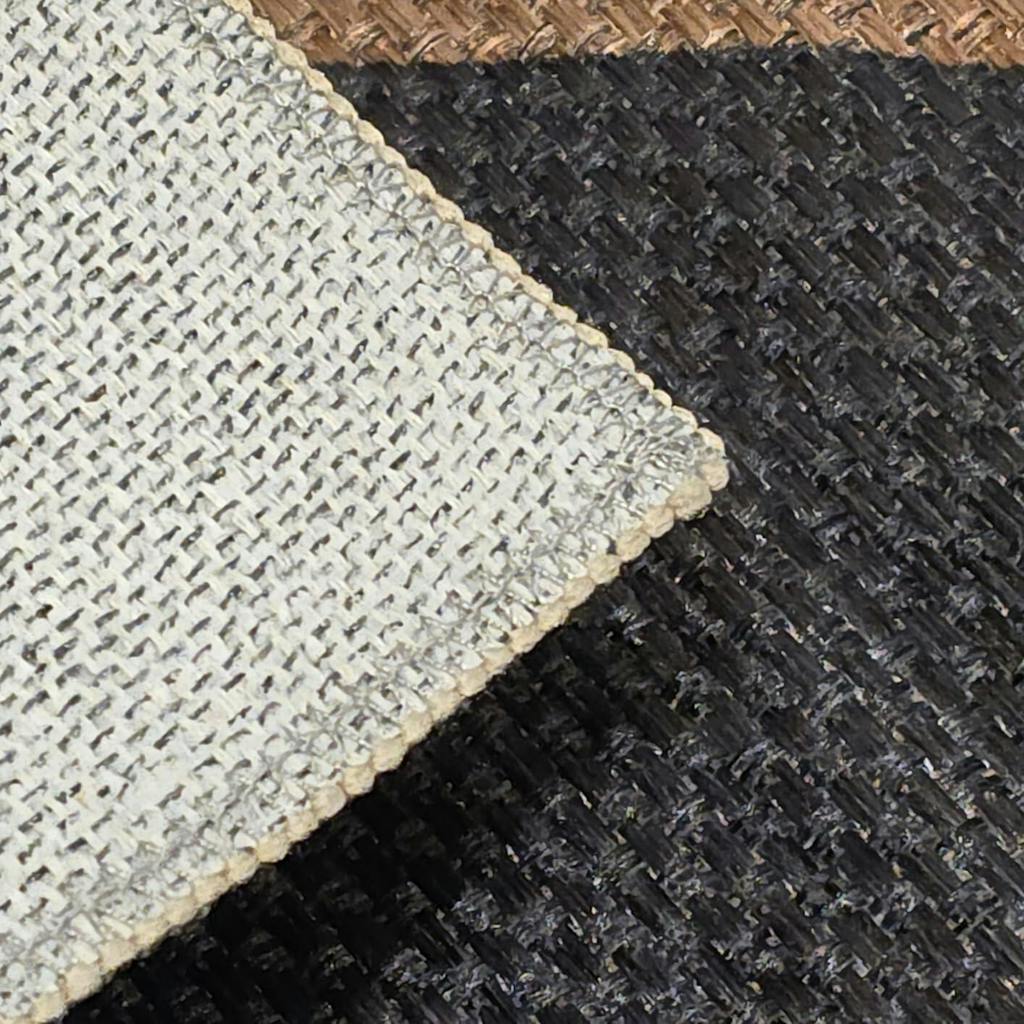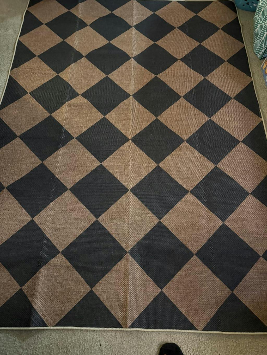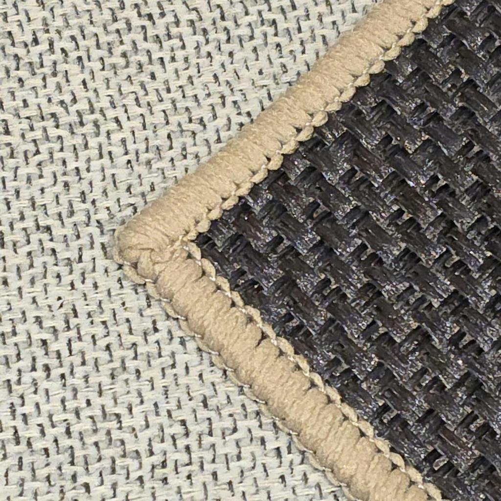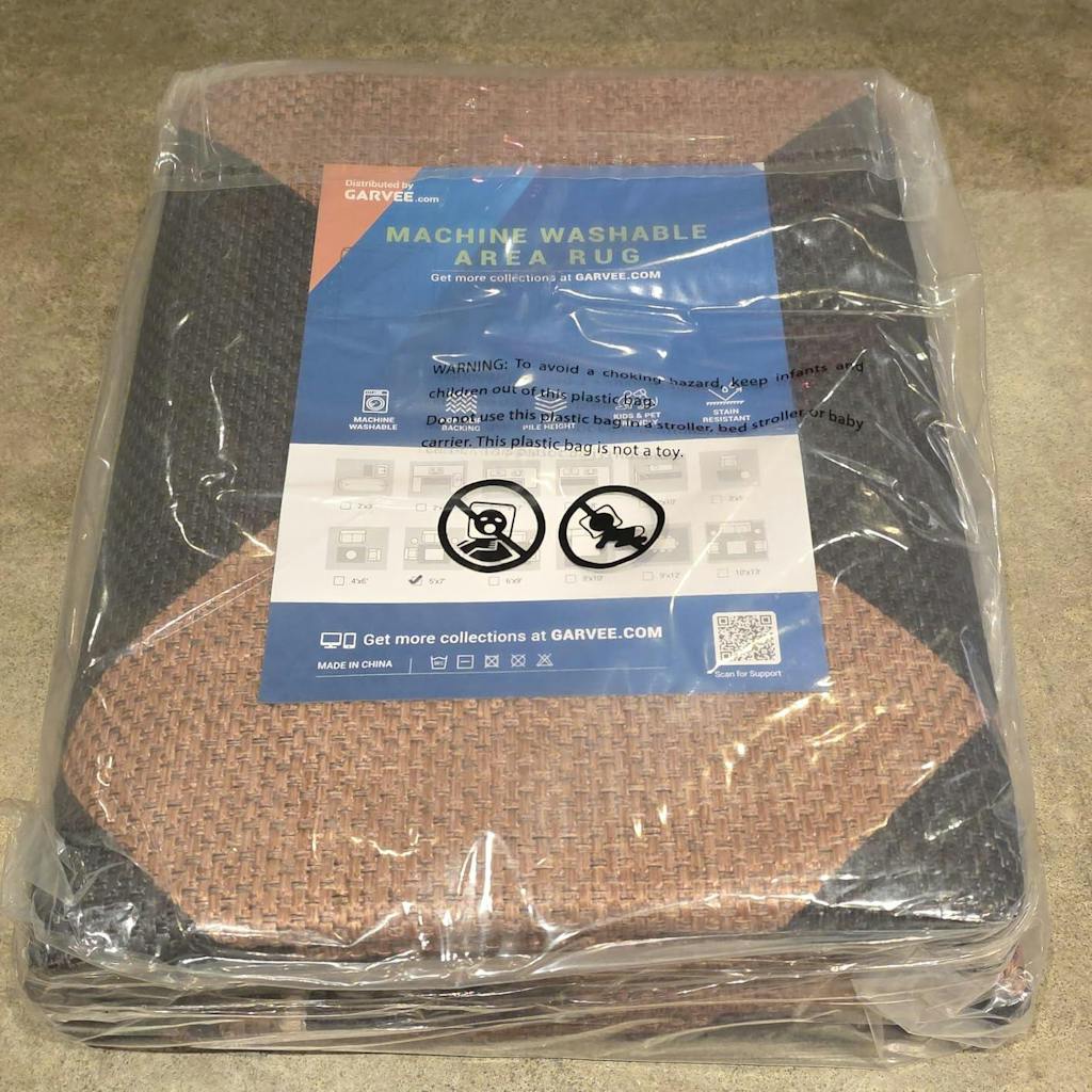 I love GARVEE goods. I own everything from their Christmas trees to their rugs and have never been disappointed in a single product. This stylish and affordable rug is no exception. I ordered the Black and Brown option and the colors are exactly as depicted in the product photos. It arrived in pristine condition with no offensive odors or scents. While this is a printed rug, I want to clarify that the rug itself is woven. (Unlike many lesser quality rugs where the woven "texture" itself is printed on.) The only printing on this rug is the well saturated, black diamond pattern. The woven texture is 100% real.I love the "easy jute" fabrication of this rug. It provides the warm and natural appearance of jute without the stink and shedding fibers of the real thing. It has perfectly square corners and the pattern is perfectly centered. The back is good and grippy, the edge binding is tight and consistent, and there are no snags or flaws. Best of all, it doesn't break the bank. If my dogs and vacuums destroy in in six months, I can replace it for less than the price of dinner out with my husband. ($53.99 at the time of my review.) Once again GARVEE has delivered a high quality, attractive product at a very reasonable price. Thank you, and well done!