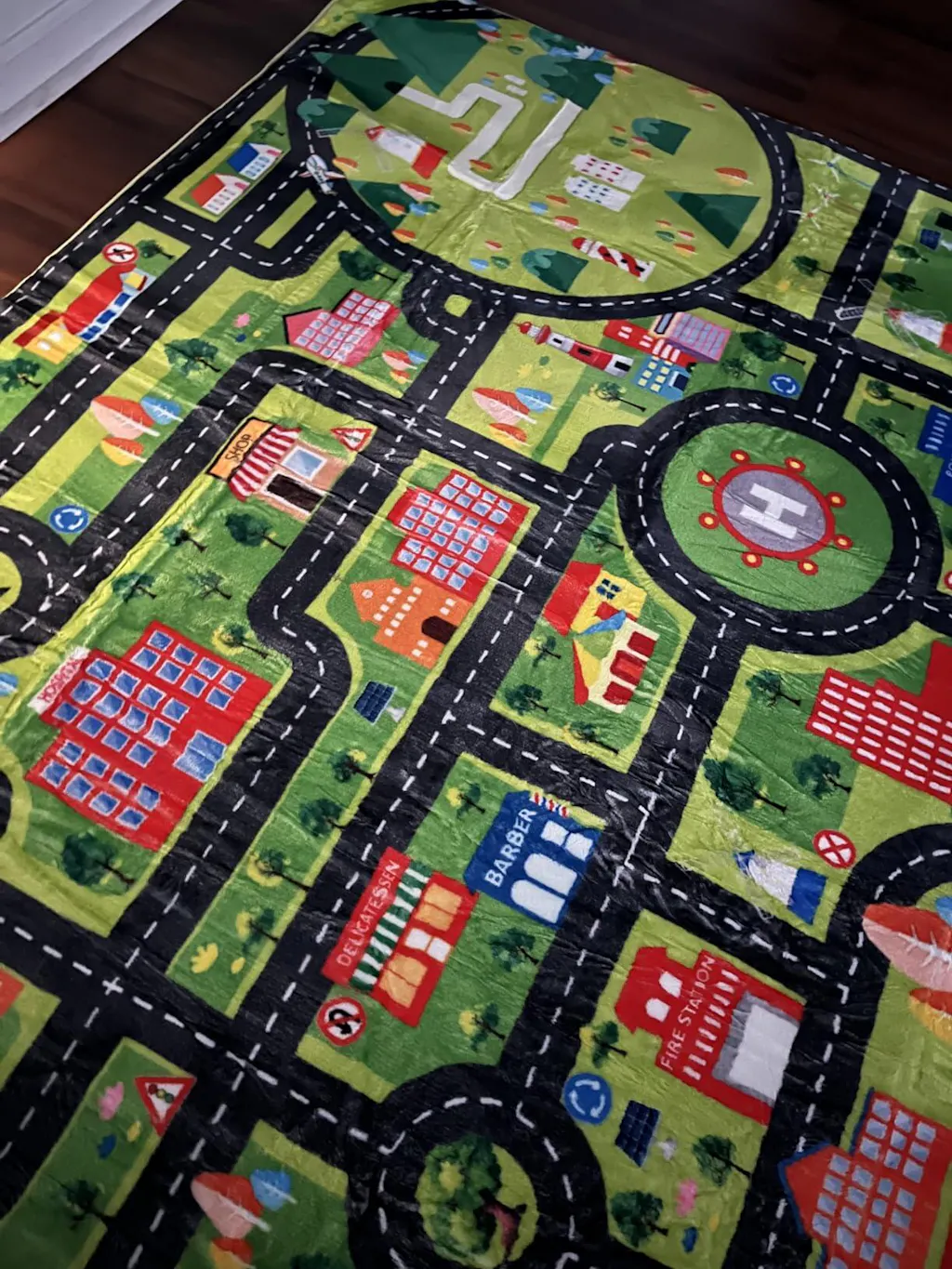 - ❤️【Perfect Gift】- The surface of this cute road traffic play rug for kids is ultra soft, cuddly and durable. It would be ideal gifts for kids baby toddler in Christmas, Children's day, Birthday and other festival. The play mat may be used on multiple surfaces (tile, wood, ceramic, marble, etc).