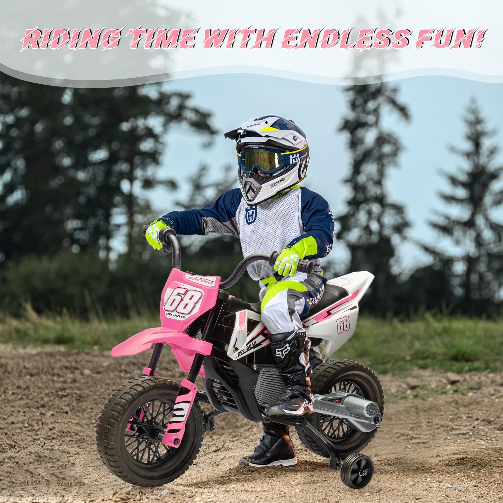 Garvee Ride - P Series: 12V Kids Electric Dirt Bike, 25W*2 Motor, Twist Grip Throttle, Spring Suspension, Training Wheels, Ride-On Toy - Pink