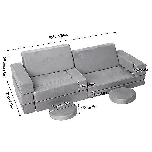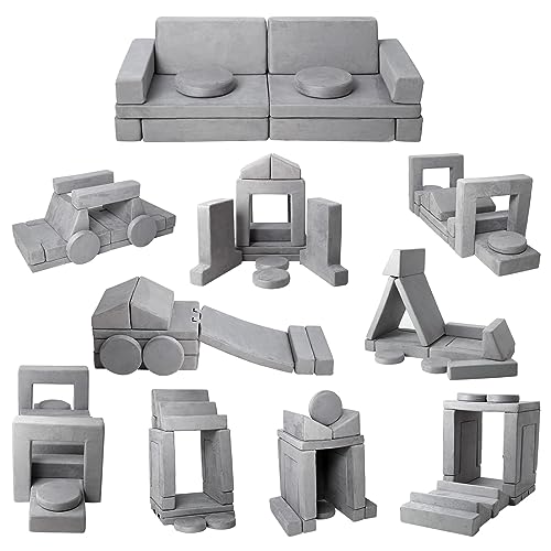 Garvee 12 Pcs Modular Kids Play Couch, Convertible Sofa for Playing, Creating, Sleeping, Bedroom and Playroom Imaginative Furniture for Boys and Girls, Grey