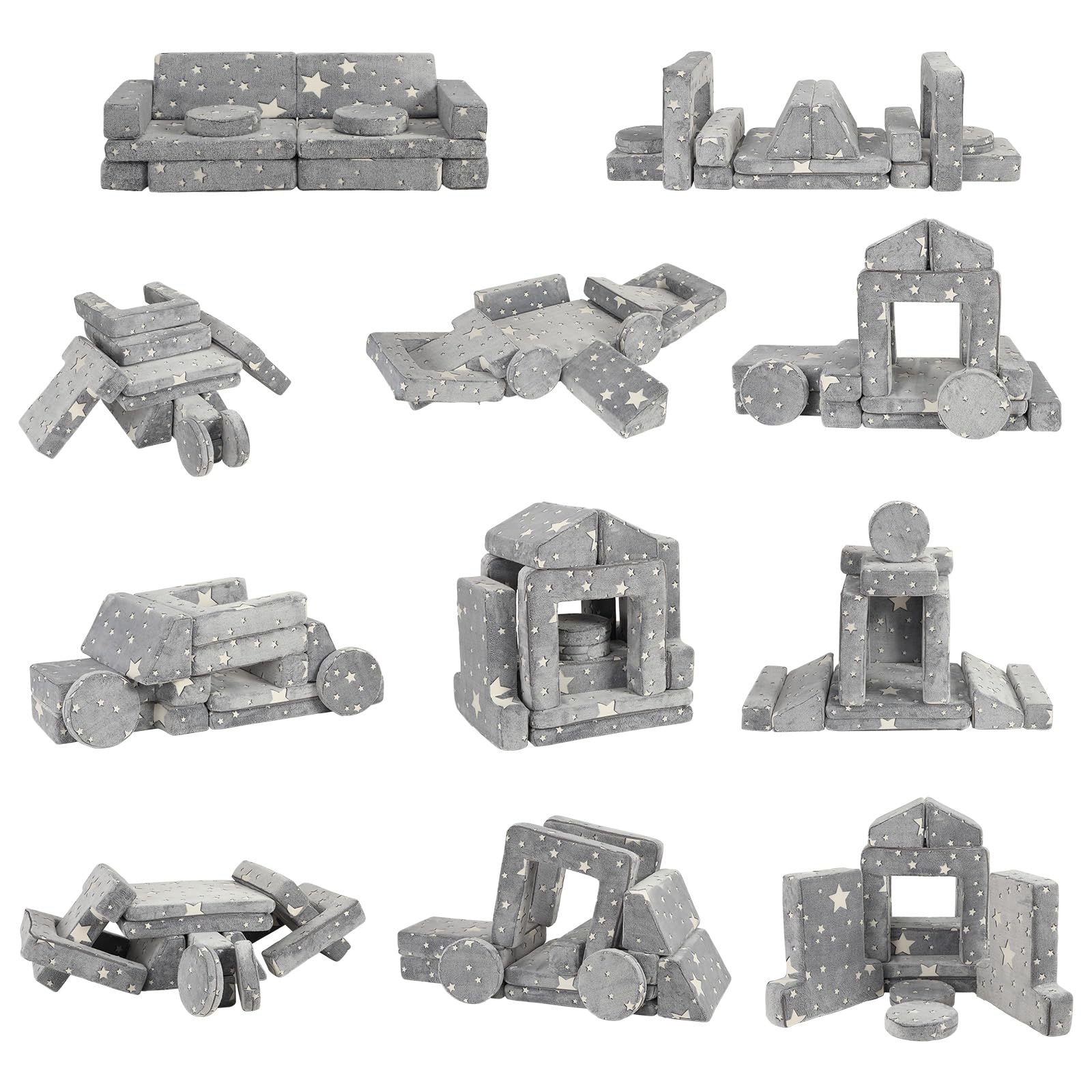 Garvee 12 Pcs Modular Kids Couch + Convertible Sofa + Star Glow in The Dark + Multi-Functional Design + Grey Color + Bedroom & Playroom