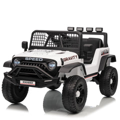- 𝐑𝐞𝐚𝐥𝐢𝐬𝐭𝐢𝐜 𝐃𝐫𝐢𝐯𝐢𝐧𝐠 𝐀𝐝𝐯𝐞𝐧𝐭𝐮𝐫𝐞 : This 12V kids ride on truck features bright LED headlights, a lifelike steering wheel, and dashboard details to deliver an immersive driving experience. With a safe speed range of 1.6–4.1 km/h, it handles various surfaces—grass, dirt, gravel, or pavement—with ease. Whether in the backyard or the park, it's perfect for your little explorer’s outdoor adventures.