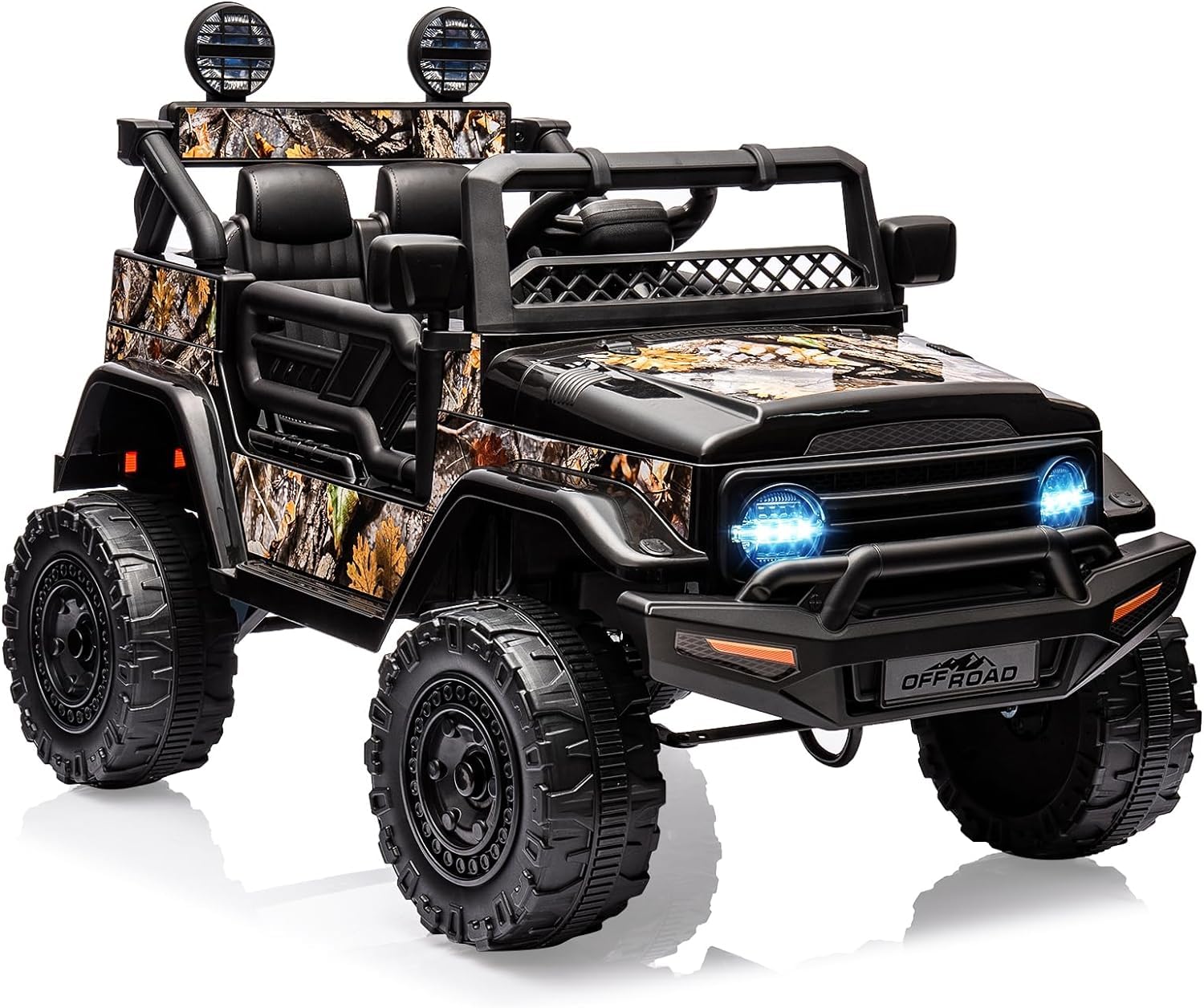 Garvee Ride - P Series: 12V Power Wheel Electric Car for Kids, Ride on Toys with Led Lights Bluetooth, 3 Speeds, Spring Suspension - Black