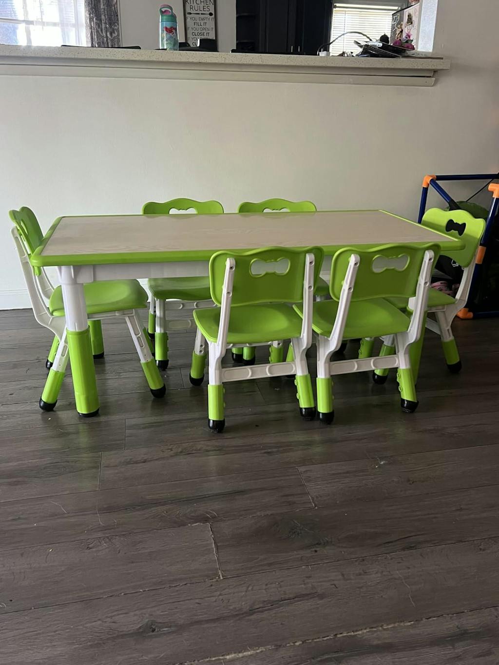 Create the perfect learning and play environment with the GARVEE Kids Adjustable Table & 6 Chair Set