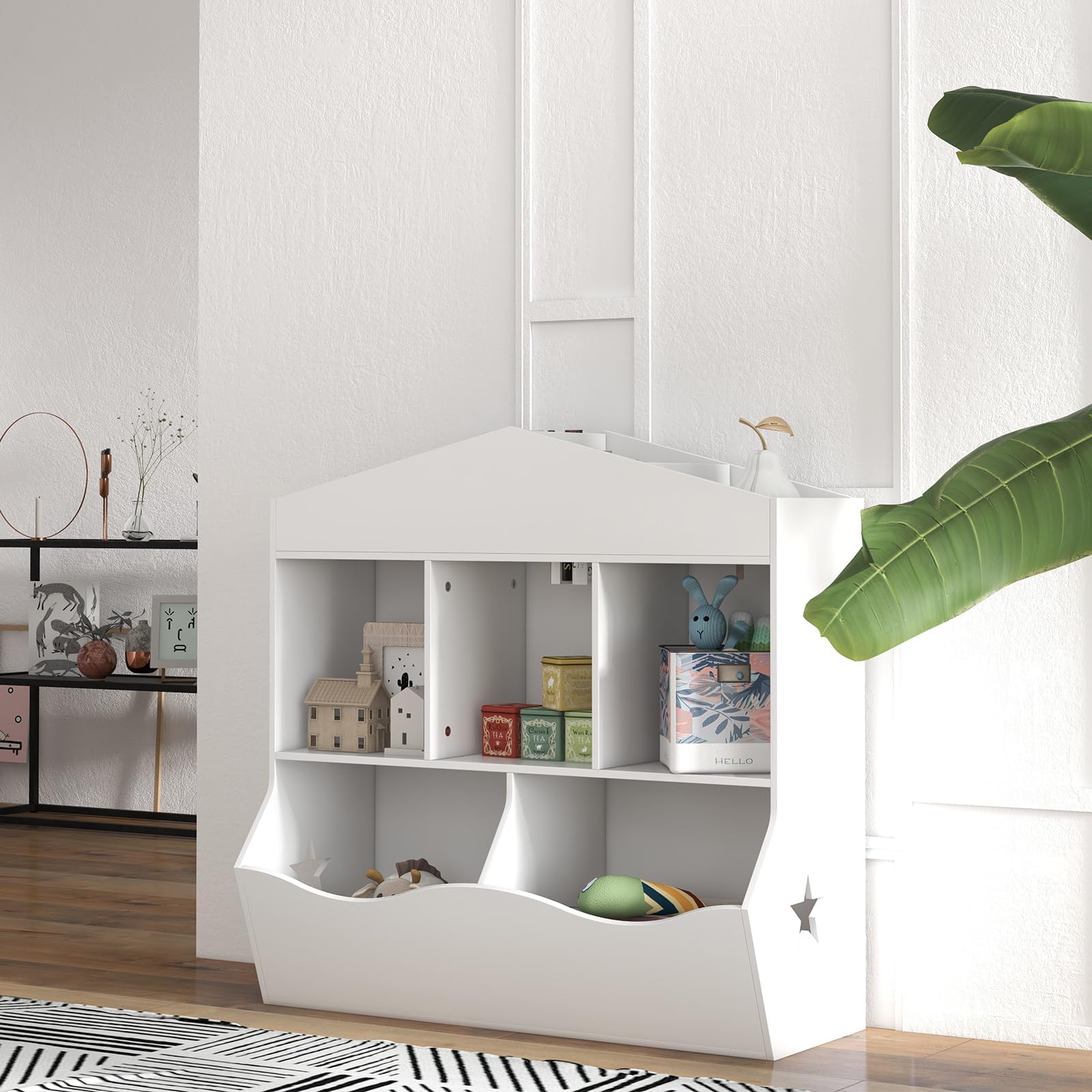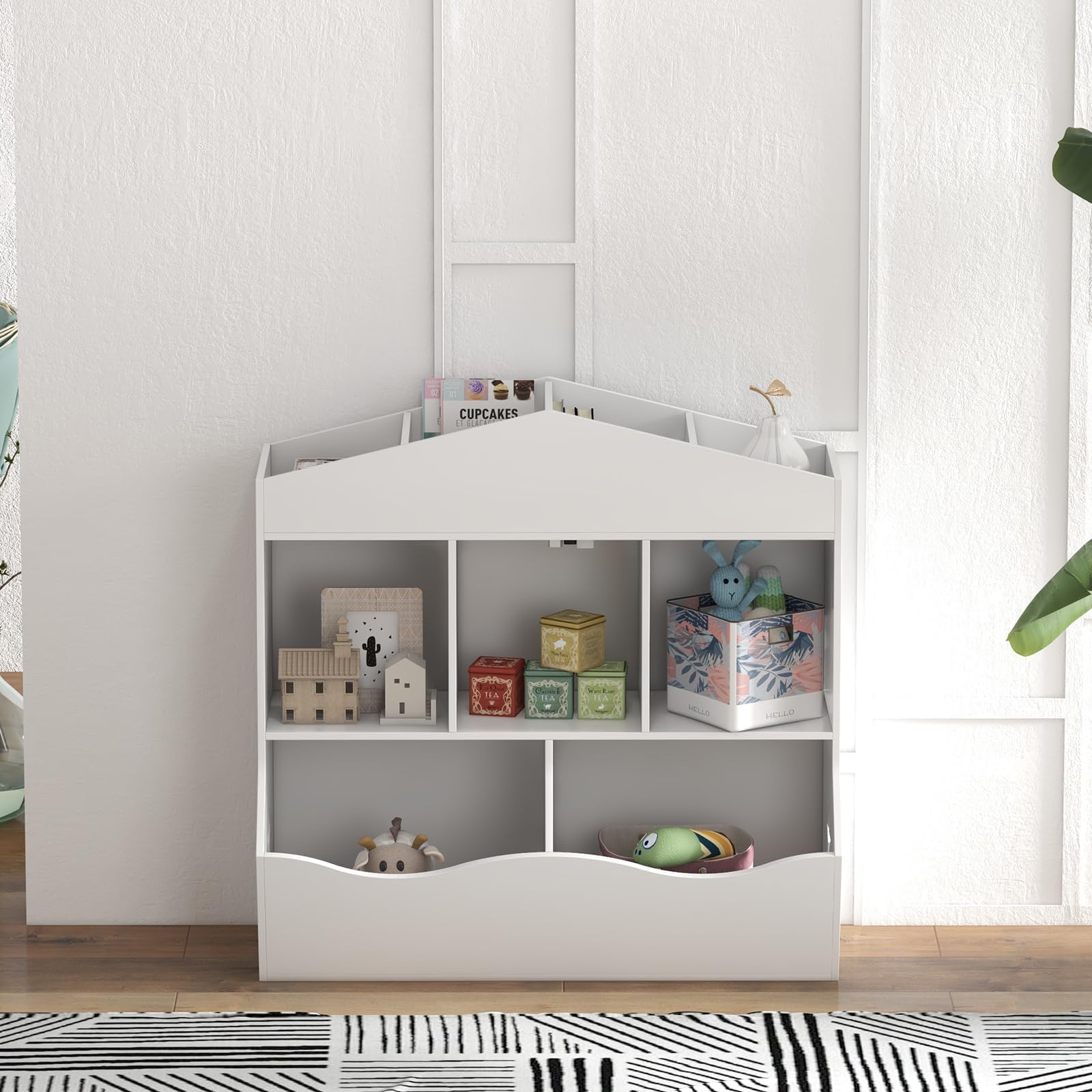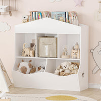 Garvee Kids Toy Storage Organizer Multifunctional Book Cabinet Wooden Bookshelf White