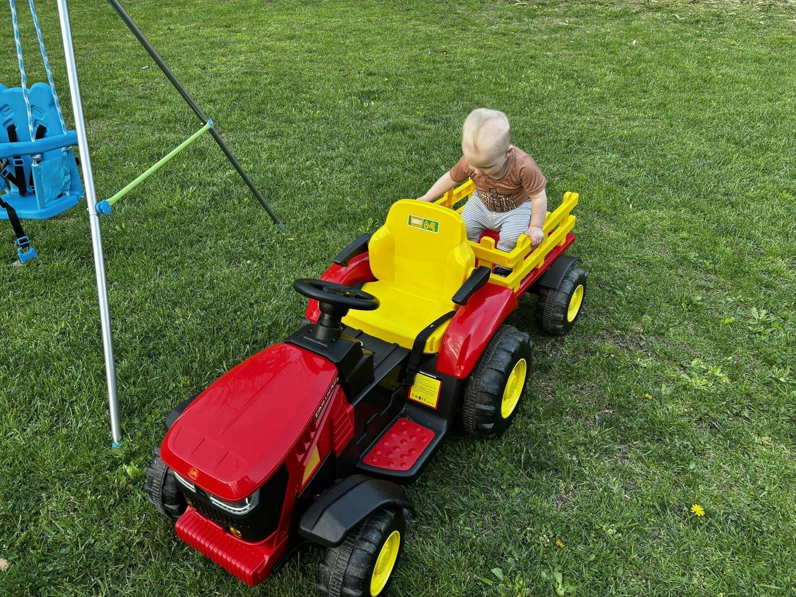 Garvee Ride - P Series: 12V Ride On Car with Trailer, Battery Powered Electric Vehicle Toy 35W Dual Motor, Led Lights, Horn, Music USB, Safety Belt, Green