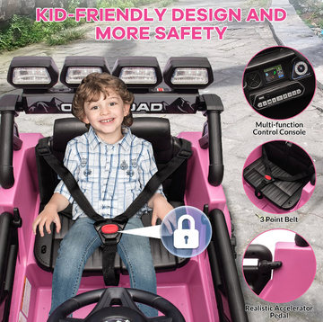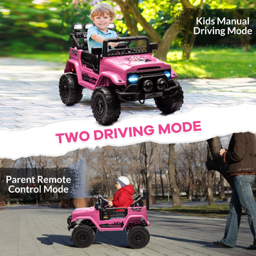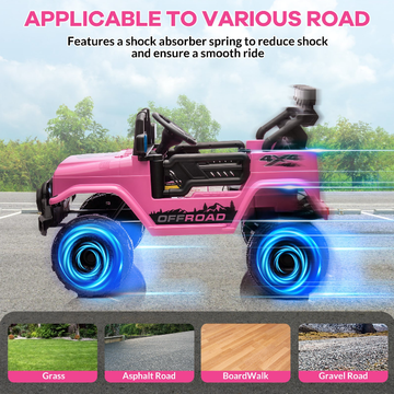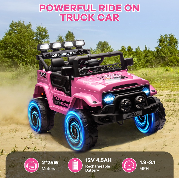 Garvee Ride - P Series: 12VElectric Ride on Truck Car For Kids Age 3+, Remote Control, Twin 25W Motors 3.1MPH Max Speed, Bluetooth USB Music Player, 4 Wheels Suspension LED Lights Safety Belt, Gift for Boy & Girl - Pink