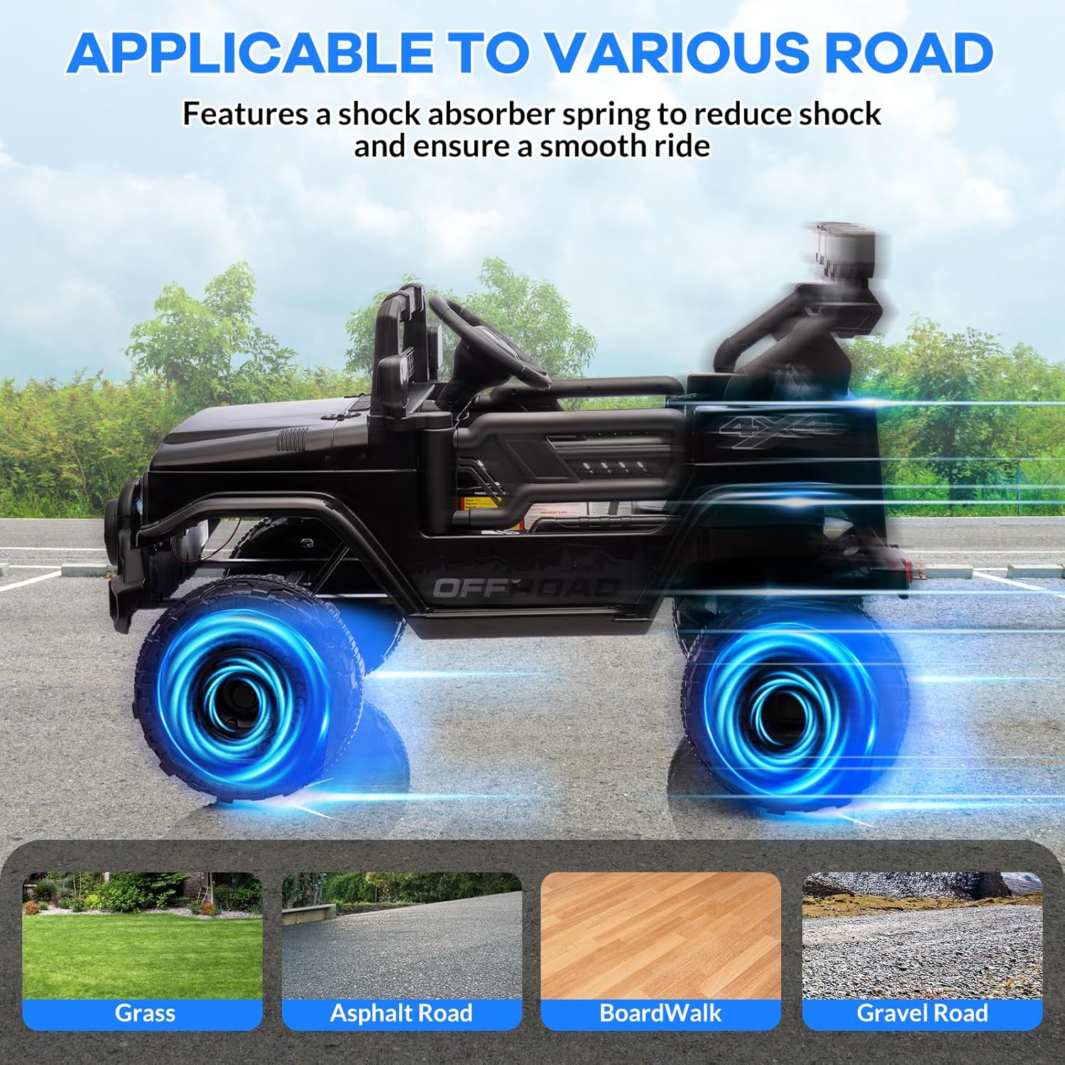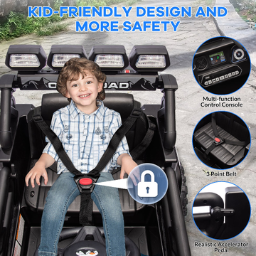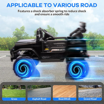 Garvee Ride - P Series: 12VElectric Ride on Truck Car For Kids Age 3+, Remote Control, Twin 25W Motors 3.1MPH Max Speed, Bluetooth USB Music Player, 4 Wheels Suspension LED Lights Safety Belt, Gift for Boy & Girl -Black