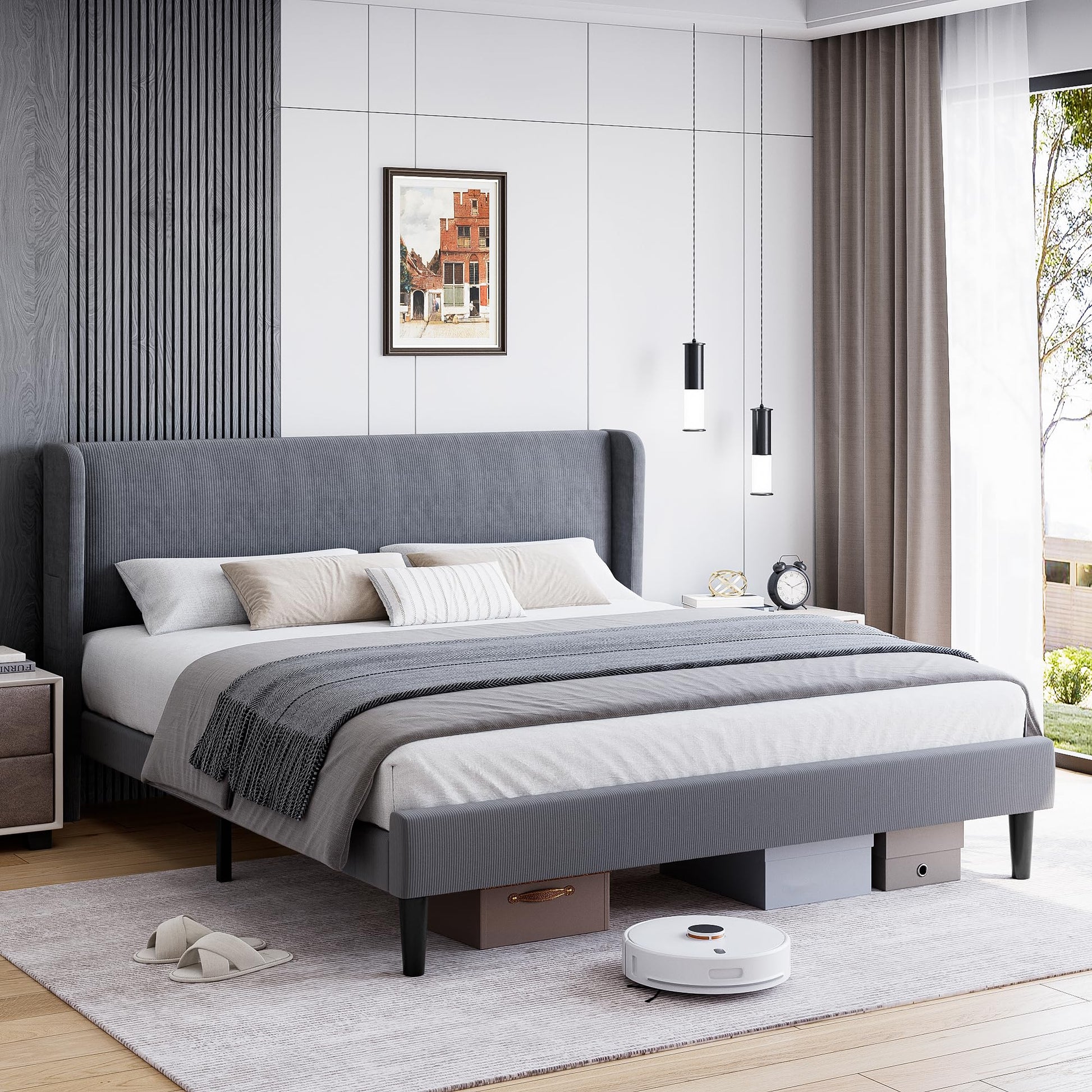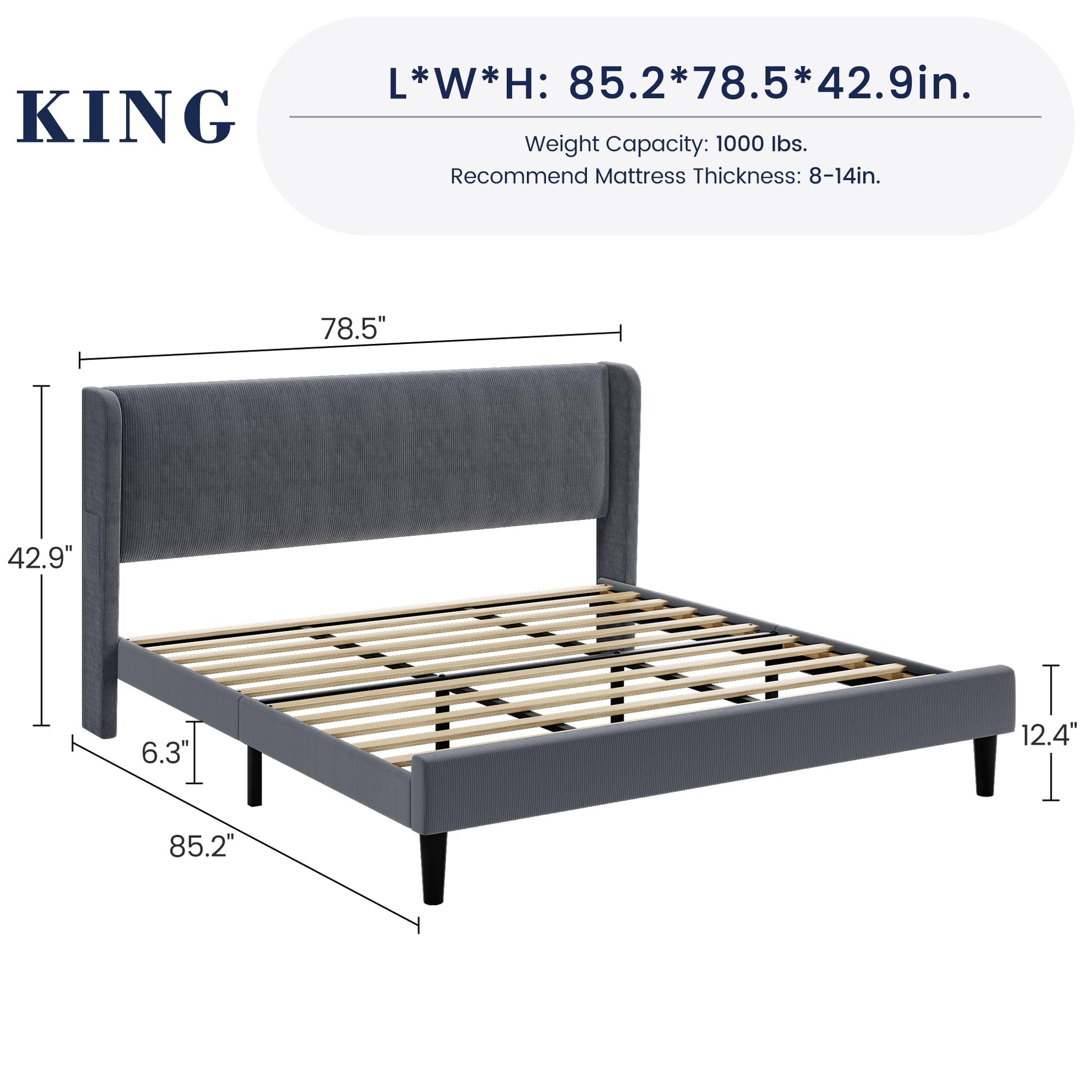 Garvee King Bed Frame, Platform Bed Frame with Upholstered Wingback Headboard, Heavy-Duty Frame Support, Noise-Free, Easy Assembly, No Box Spring Needed, Dark Gray