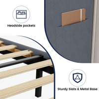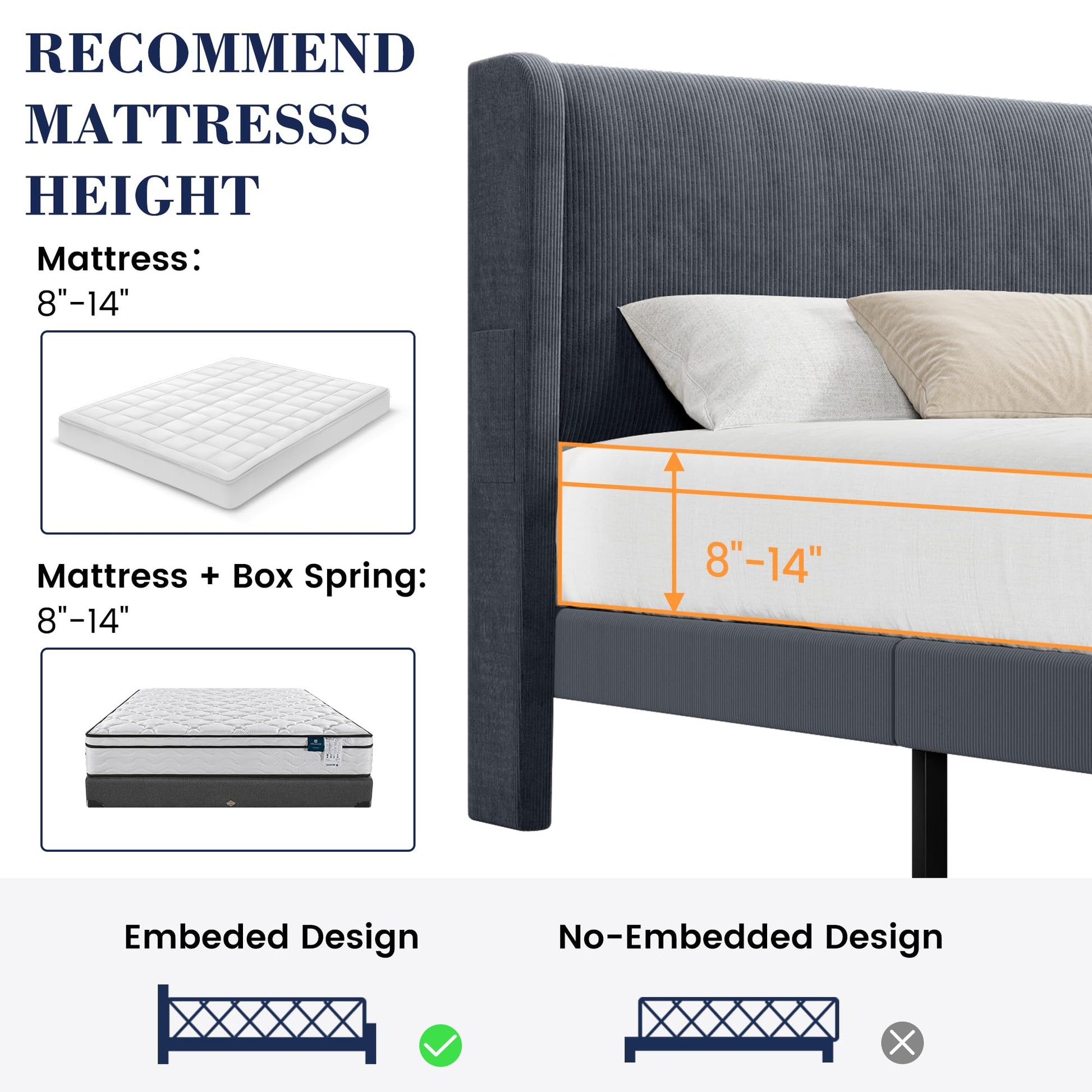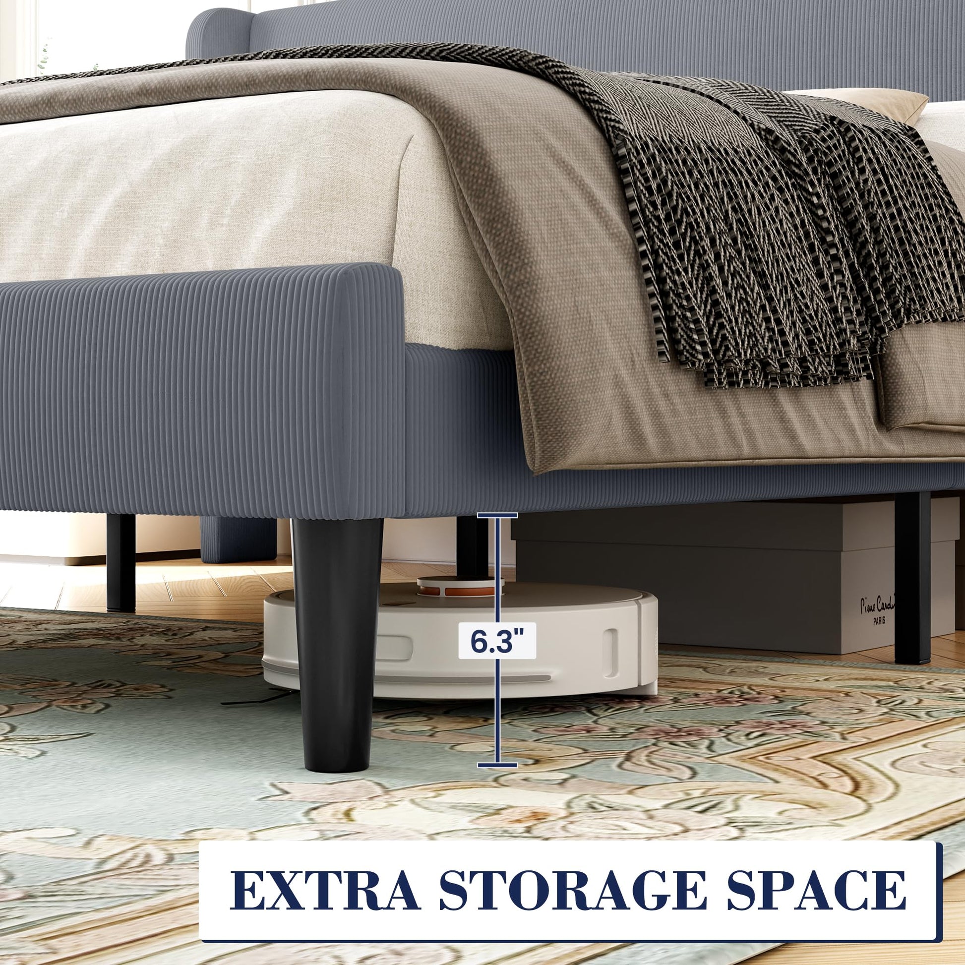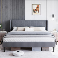 - Storage Space: The king size bed frame offers ample under-bed storage for extra items. The wingback headboard of the bed also includes two pockets for your phone, helping keep your space organized