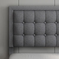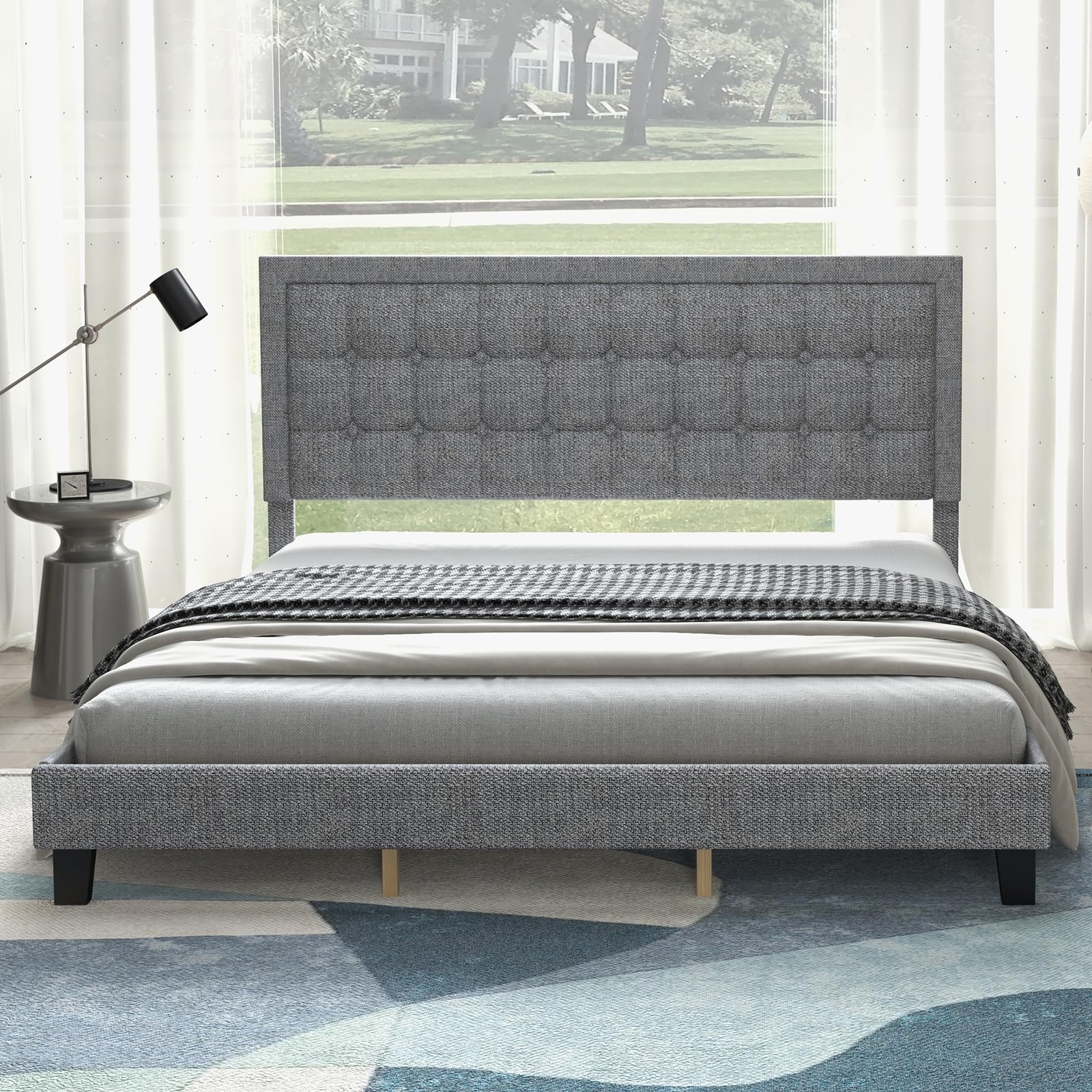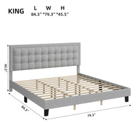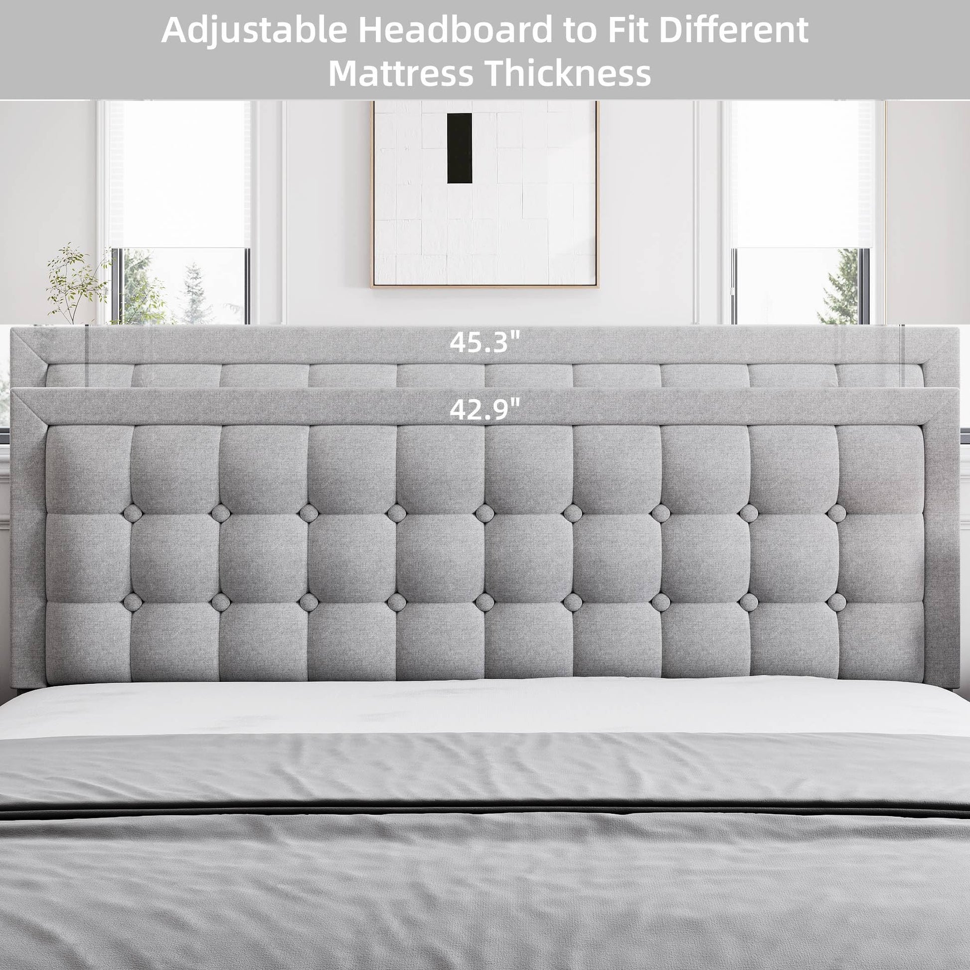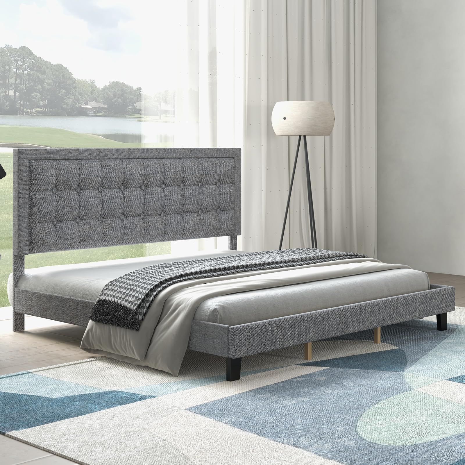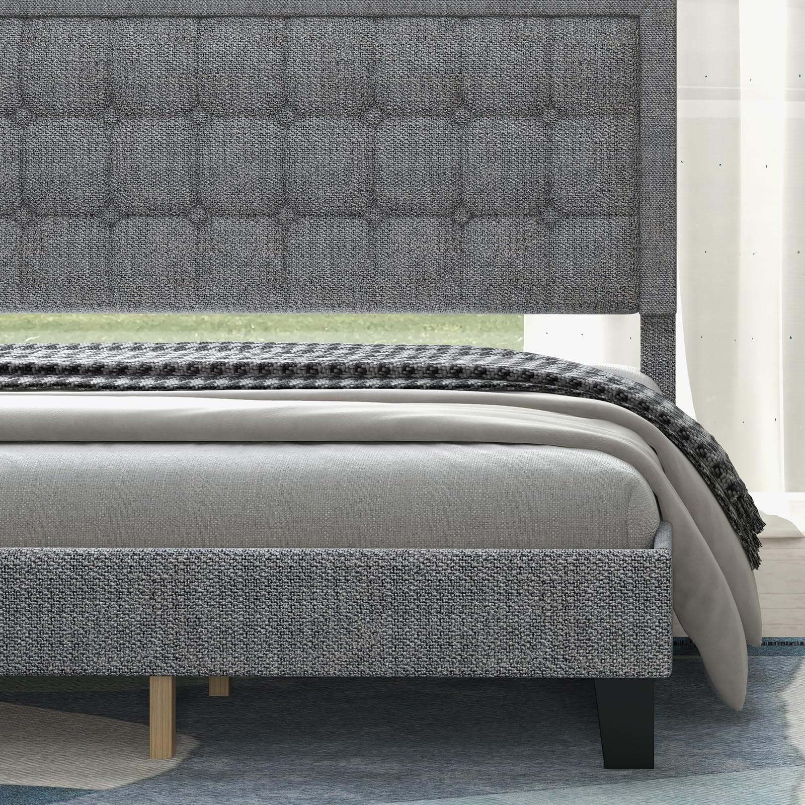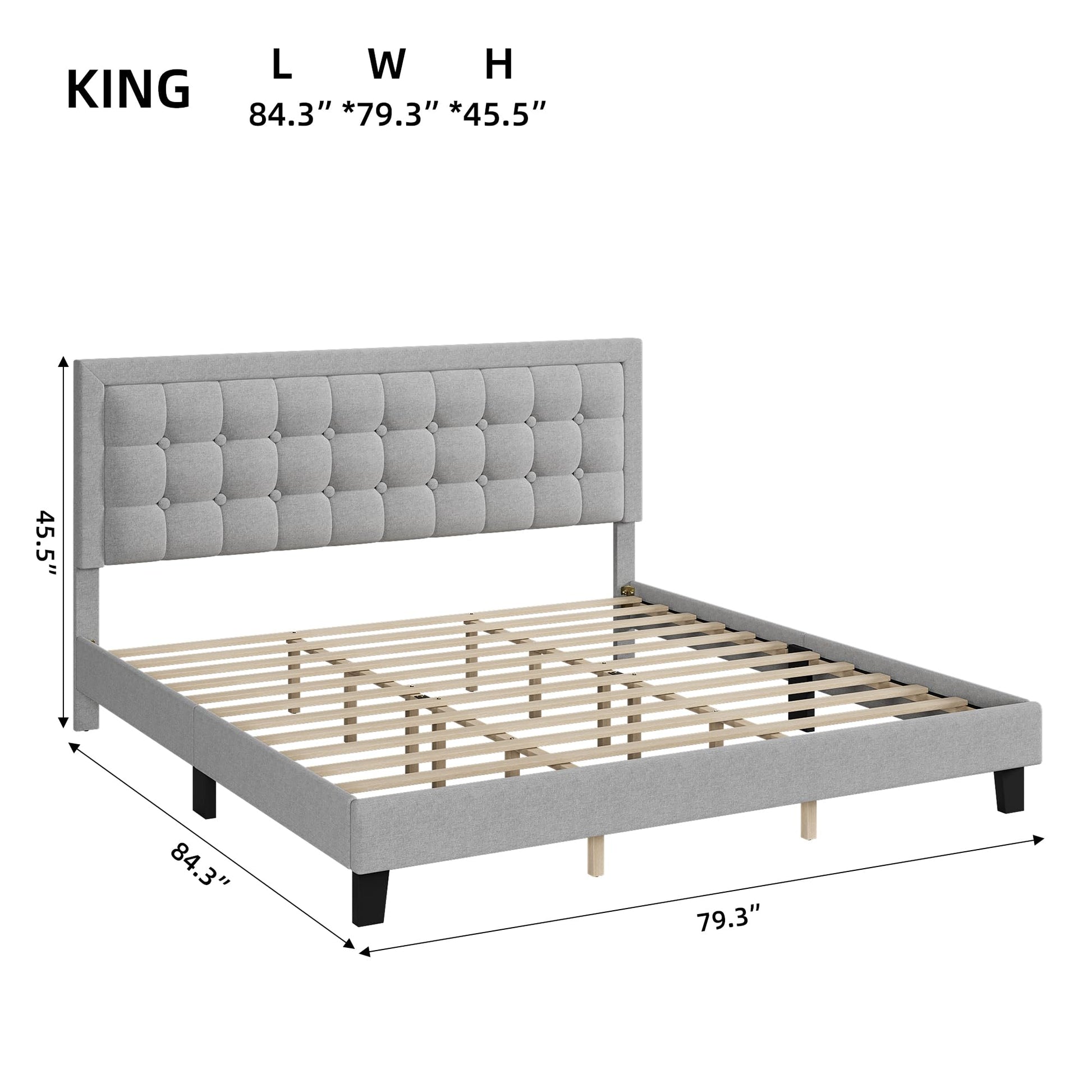 Garvee King Size Platform Bed Frame, Upholstered Button Tufted Headboard, Metal Foundation, Wood Slats, Adjustable, Noise-Free, Light Grey