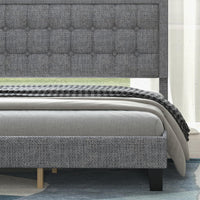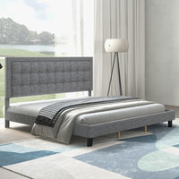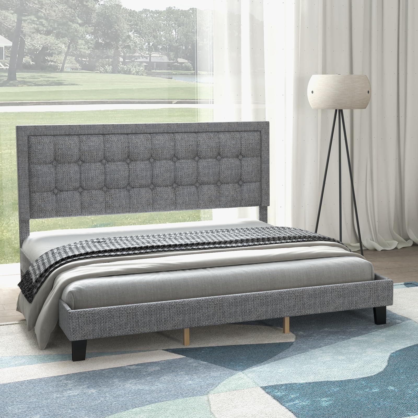 With its stylish upholstered design, button-tufted headboard, and sturdy construction, this bed frame combines aesthetics with practicality. The metal foundation and wood slats ensure stability and longevity, making it a wise investment for your bedroom.