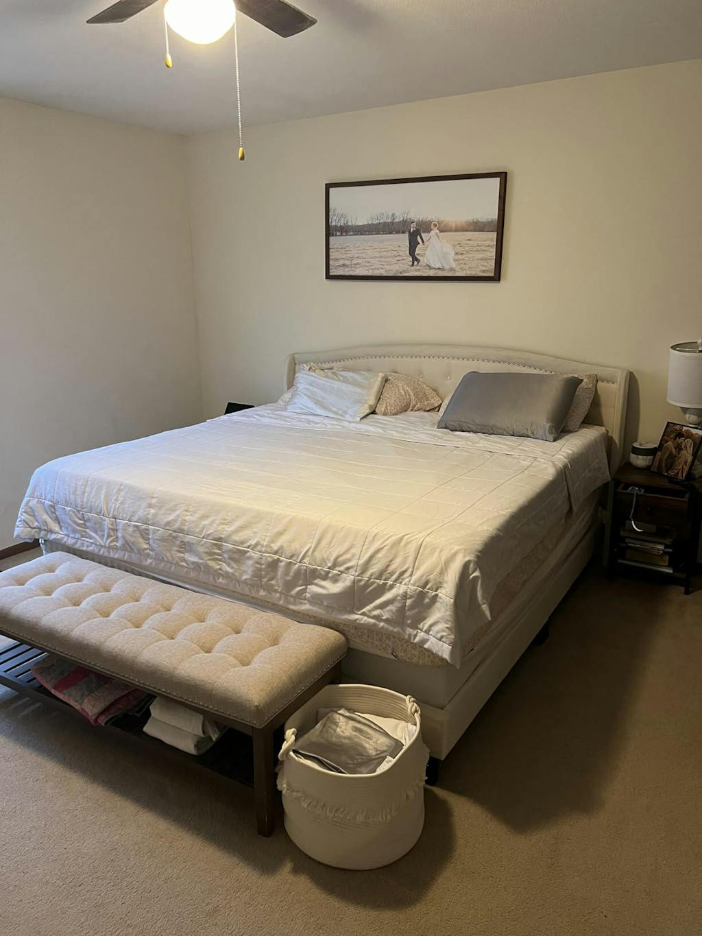The elegant wingback headboard adds a touch of sophistication to your bedroom, creating a focal point that elevates your entire decor.