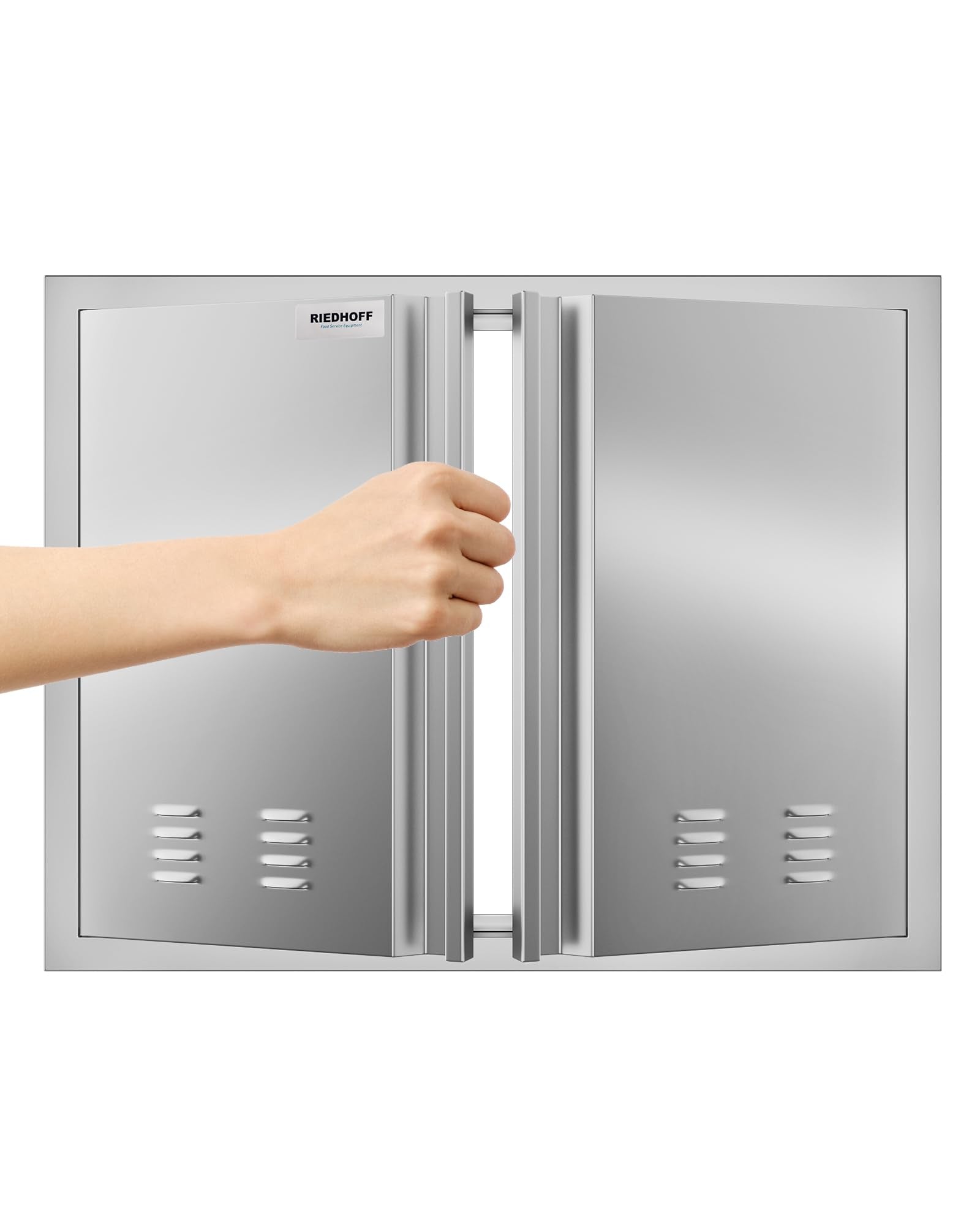Garvee Outdoor Kitchen Doors 24" H x 26" W, Stainless Steel BBQ Double Access Door,Recessed Handle for Outdoor Kitchen Cabinet Grilling Station and BBQ Island
